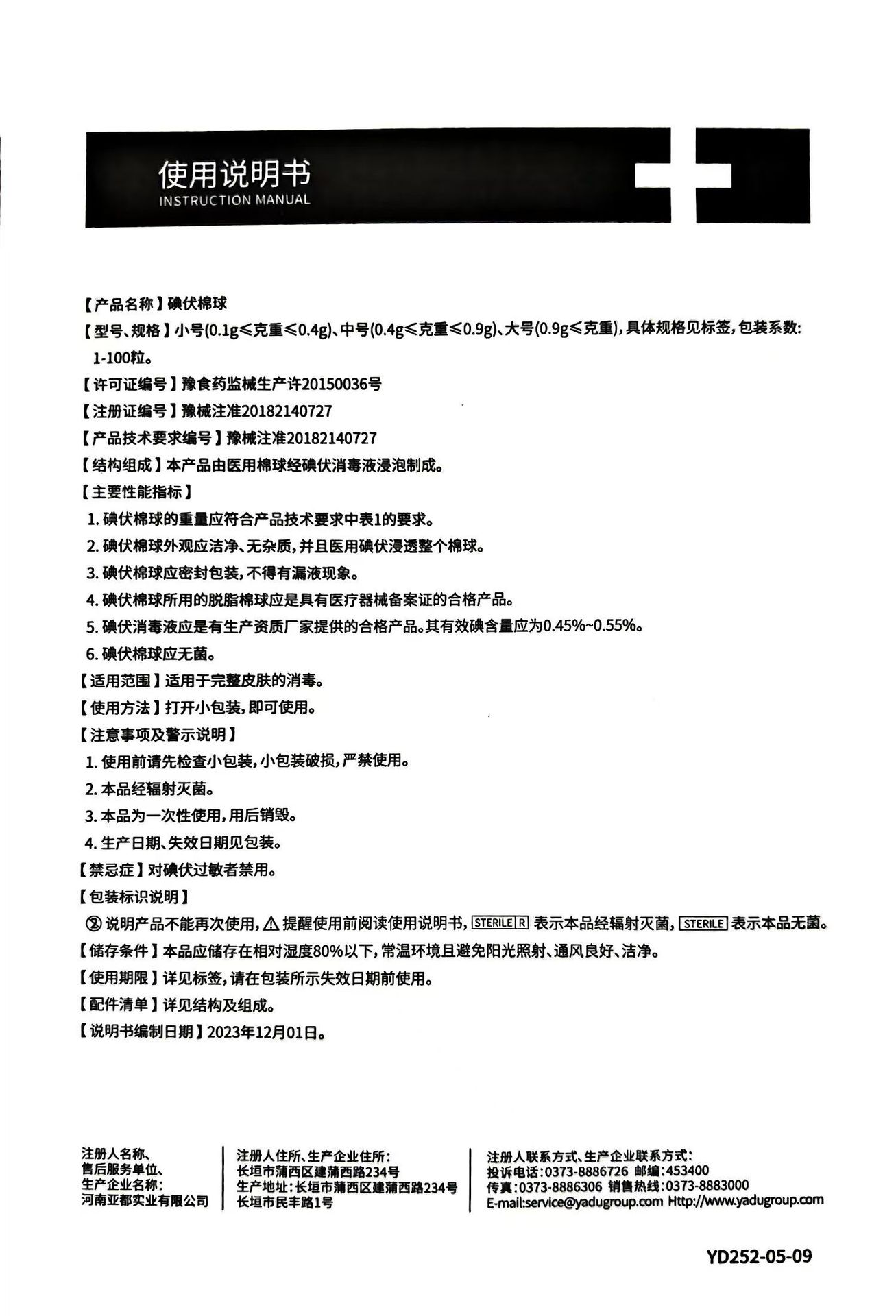 Yadu йодофорные ватные шарики маленькие, средние и большие 2 штуки, 5 штук, облученная стерилизация, индивидуальная упаковка