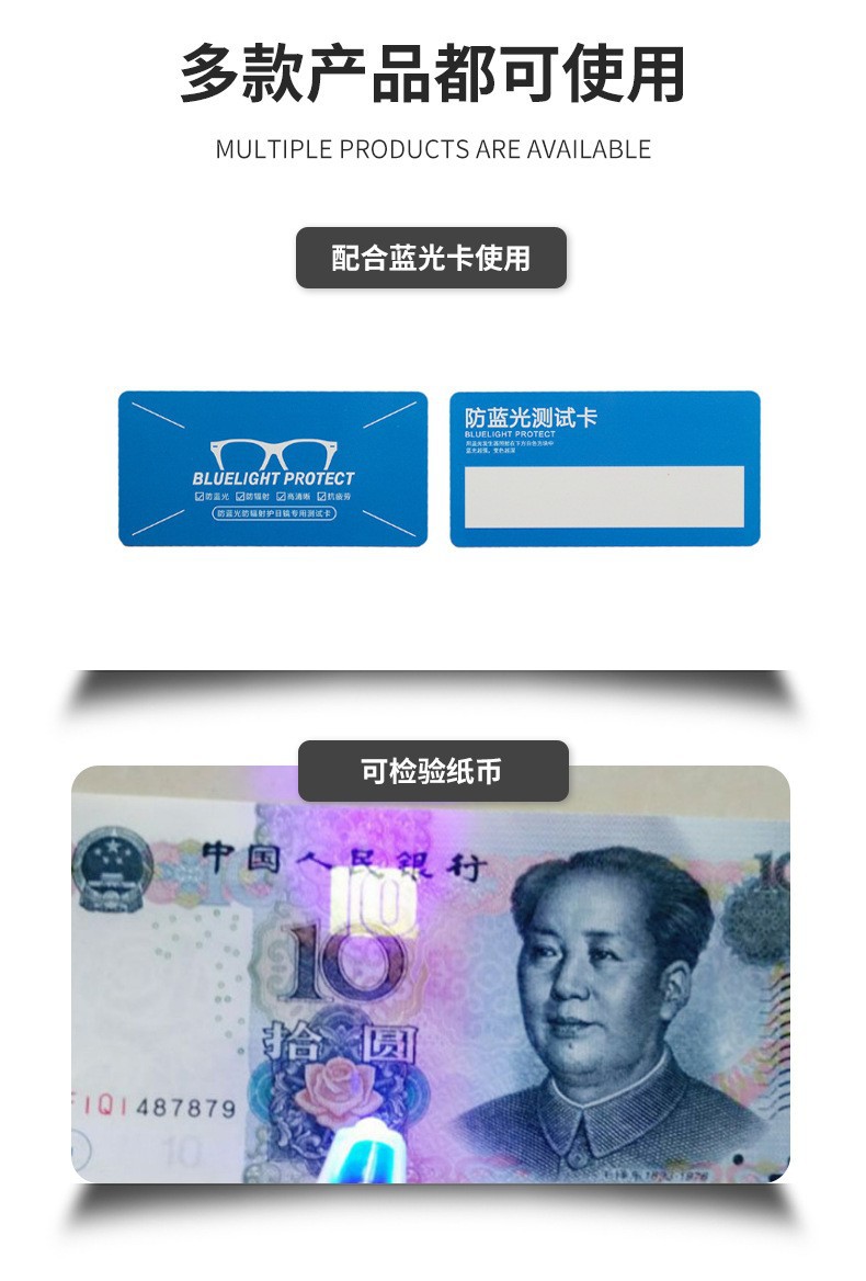 ультрафиолетовая синяя лампа, лампа для проверки анти-синего света, карточка для проверки линз, можно отправить в одном экземпляре