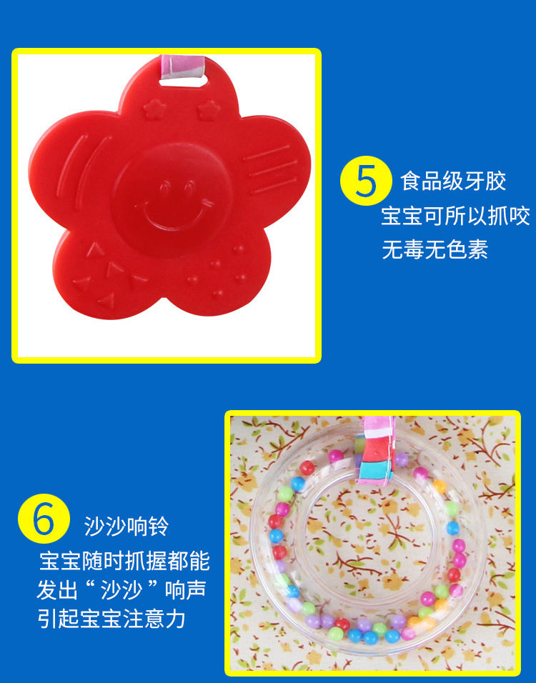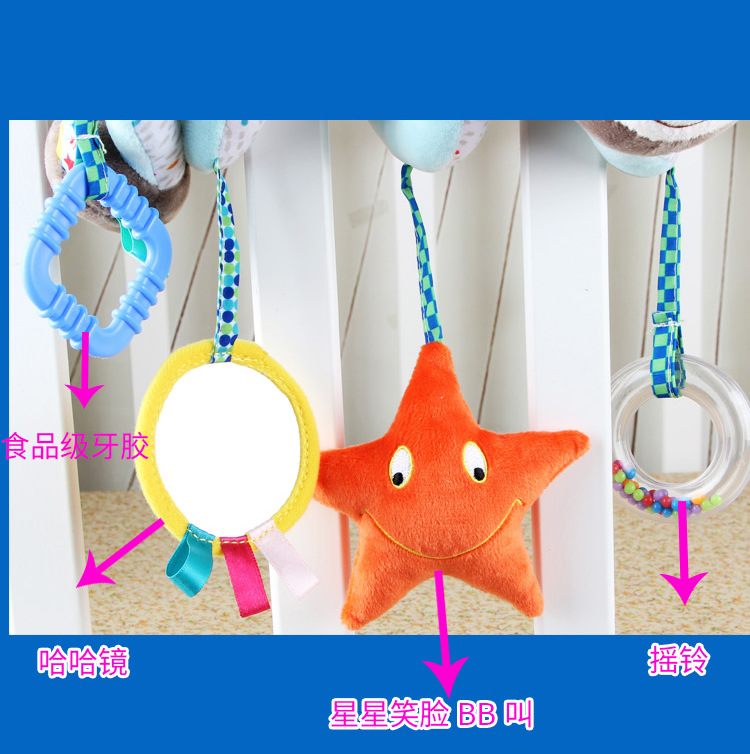 【产品简介】:做工精细,车线整齐,面料柔软,充棉饱满,水洗不掉毛不掉色,不含荧光剂;精美刺绣工艺,婴儿床婴儿推车,吸引宝宝注意,陪伴宝宝并安抚情绪