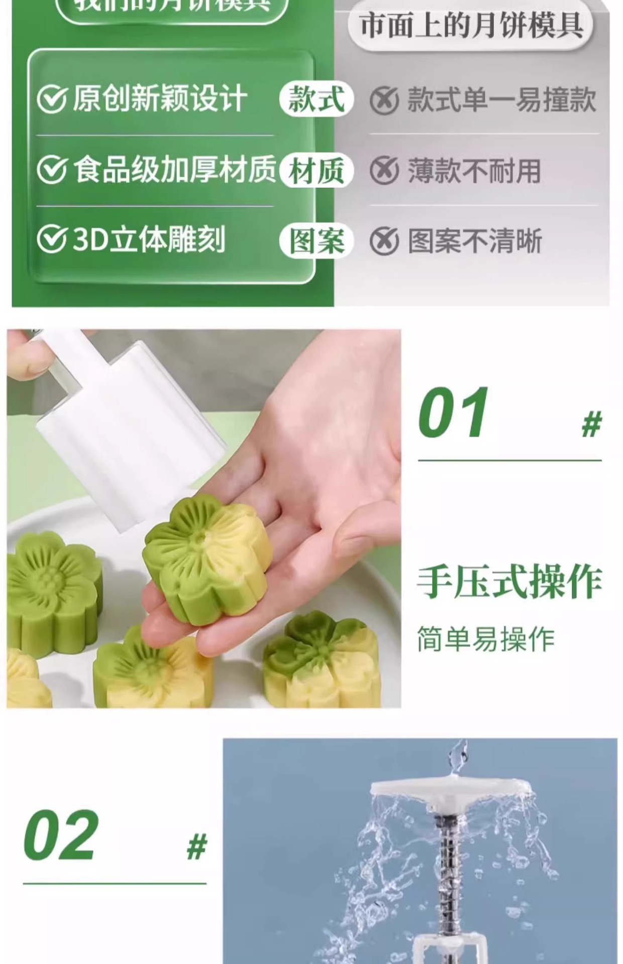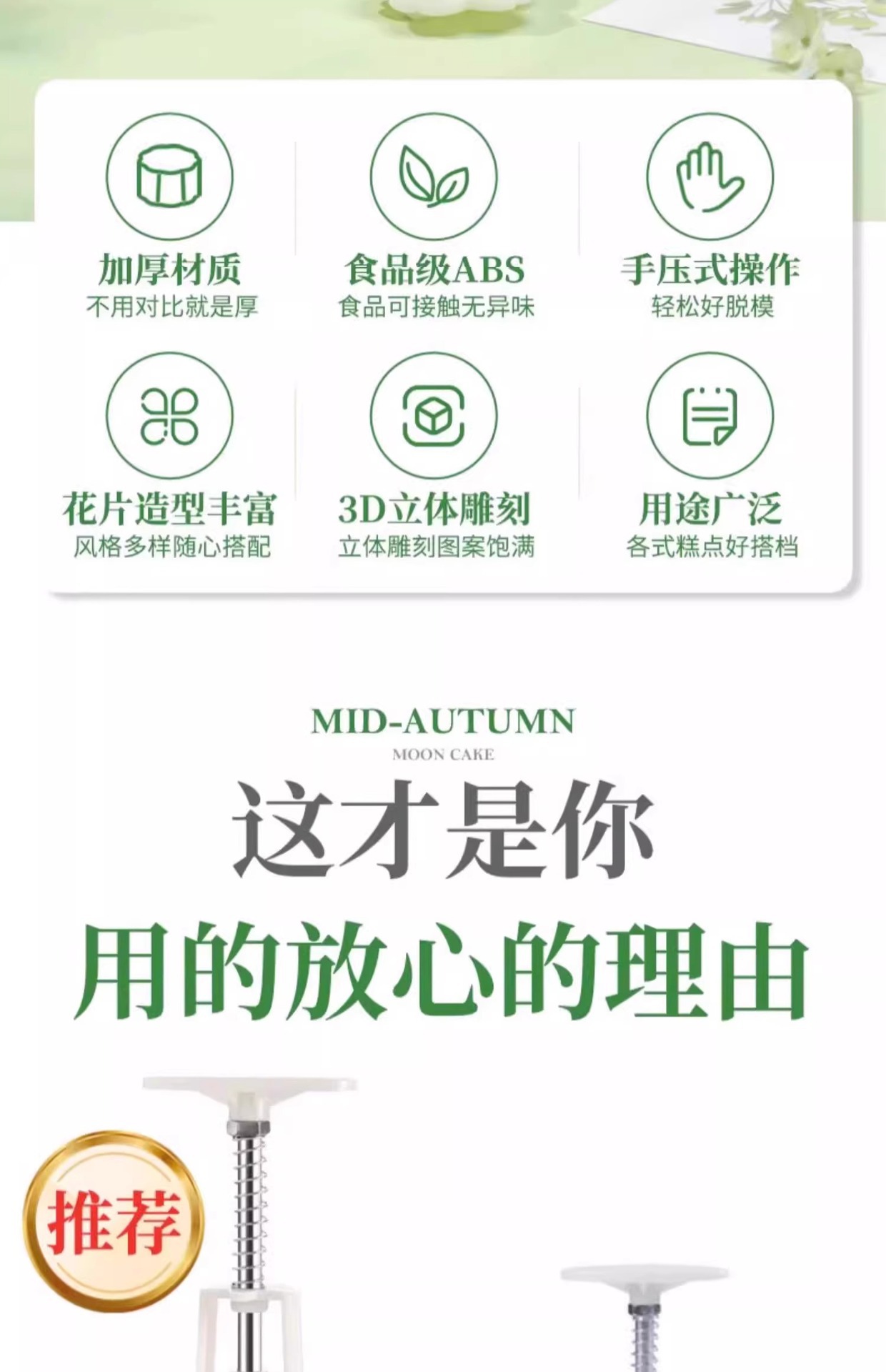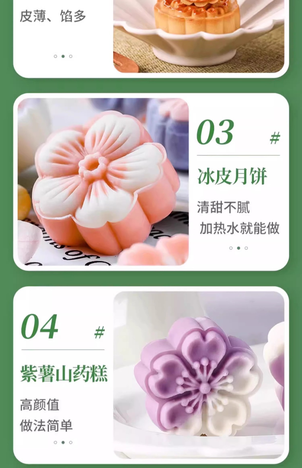 ![]() | Pressing abrasive tools [set/with 8 flowers] random colors | White/size: 5*14.5cm, suitable for 50g mooncake weight | ¥3.0 / ≈ 36 ₽ | 99999012 | 6098750198055 |
