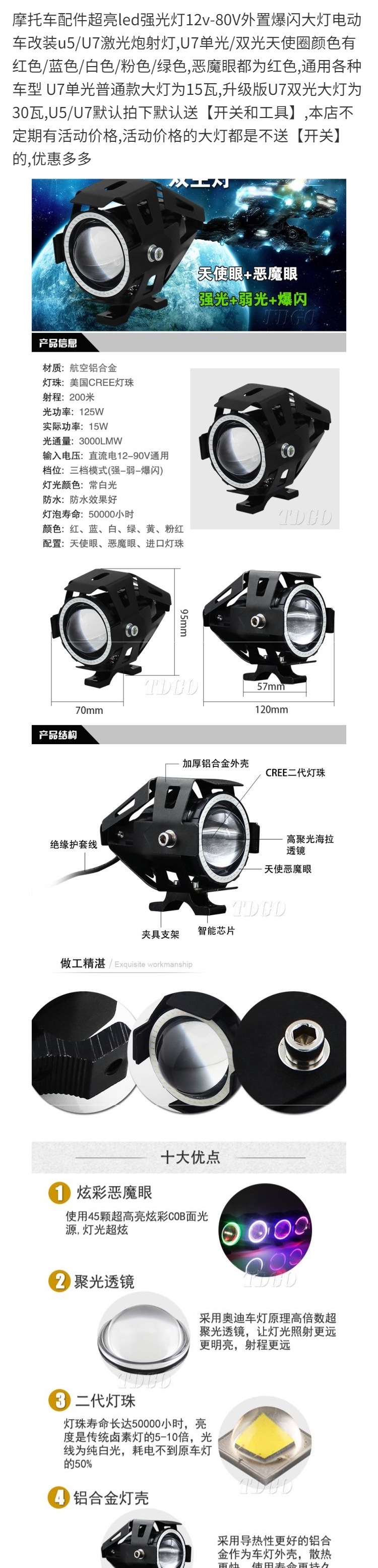 Супер яркий светодиодный фонарь для мотоцикла электрического транспортного средства 12V-80V внешний фонарь U7/U5 лазерный прожектор
