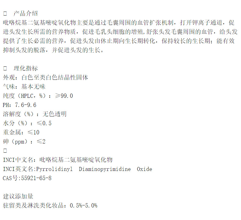 Сравнимый с 99% Пирролидинадиамидопиримидинием Оксид Водорастворимый Сырье для роста волос 55921-65-8