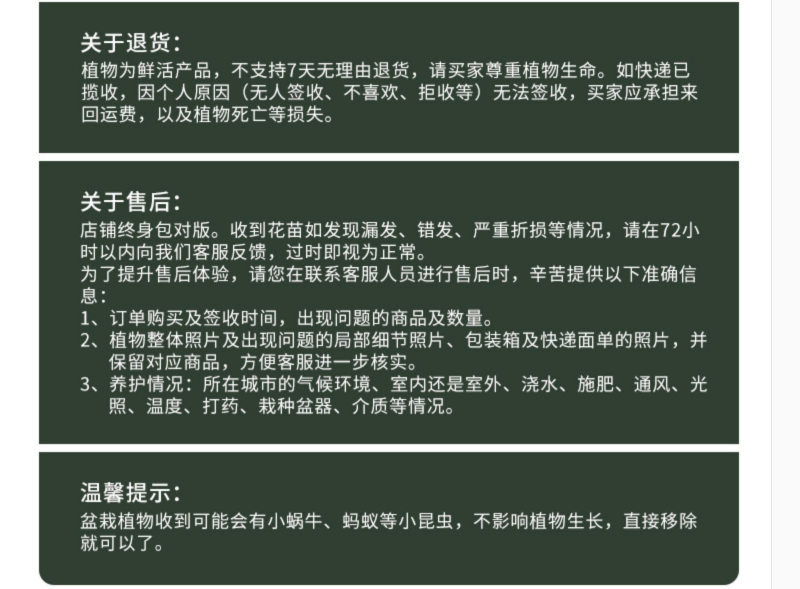 ![]() | Seedlings 15- 25cm | Aunt maggie (seedling pots shipped from the original soil) | ¥4.86 / ≈ 59 ₽ | 49999 | 6105313715299 | |