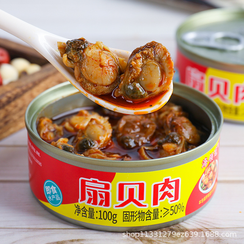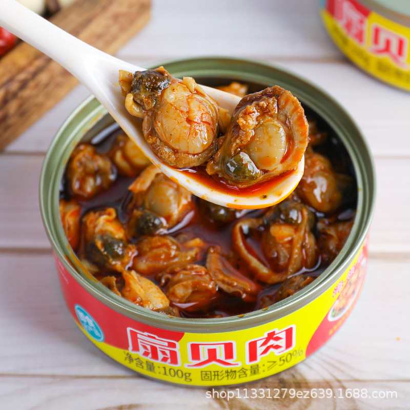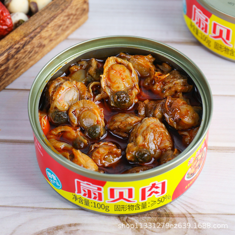 Острые закуски из мяса гребешка, консервированные, интернет-знаменитости, закуска, готовая еда 100г, консервированные гребешки