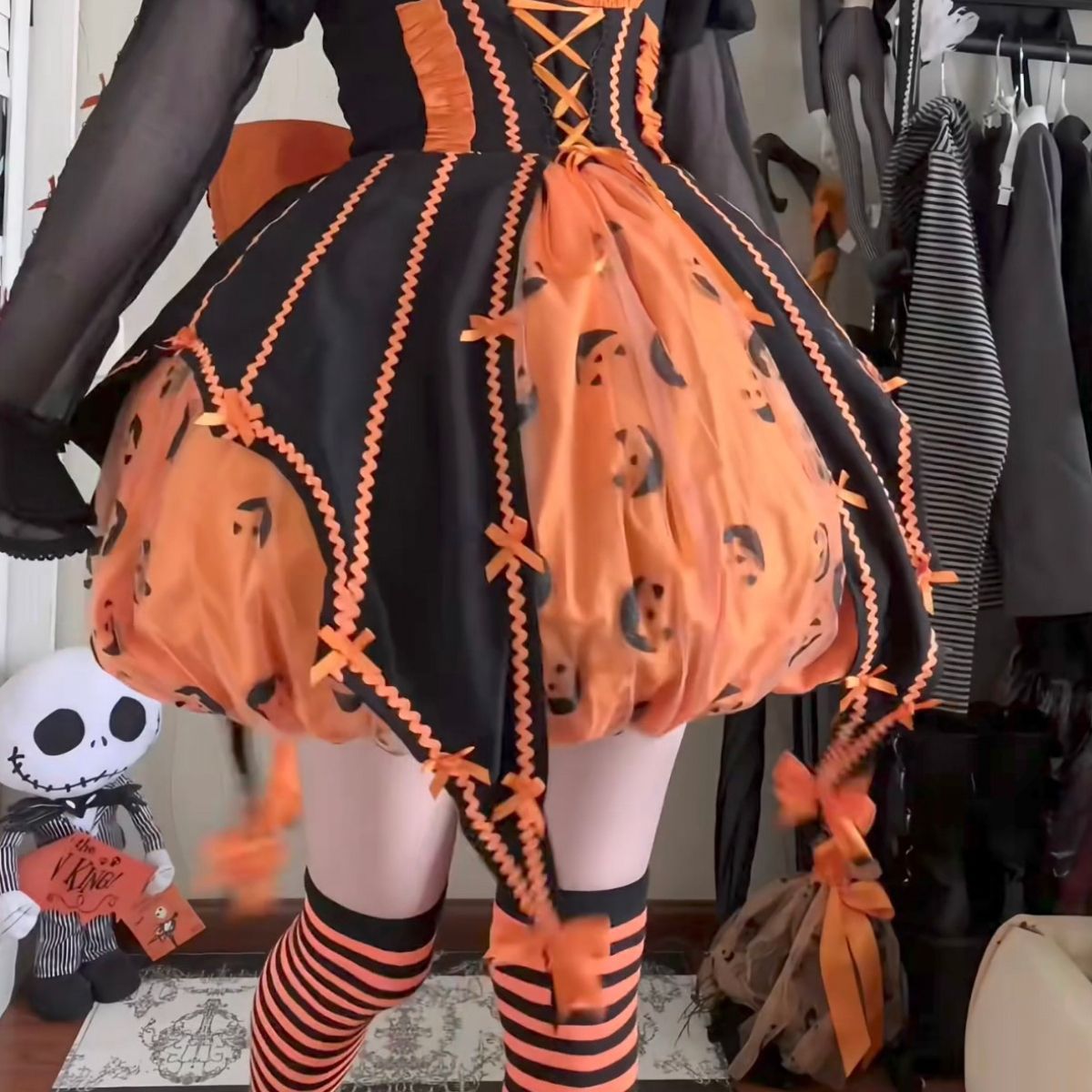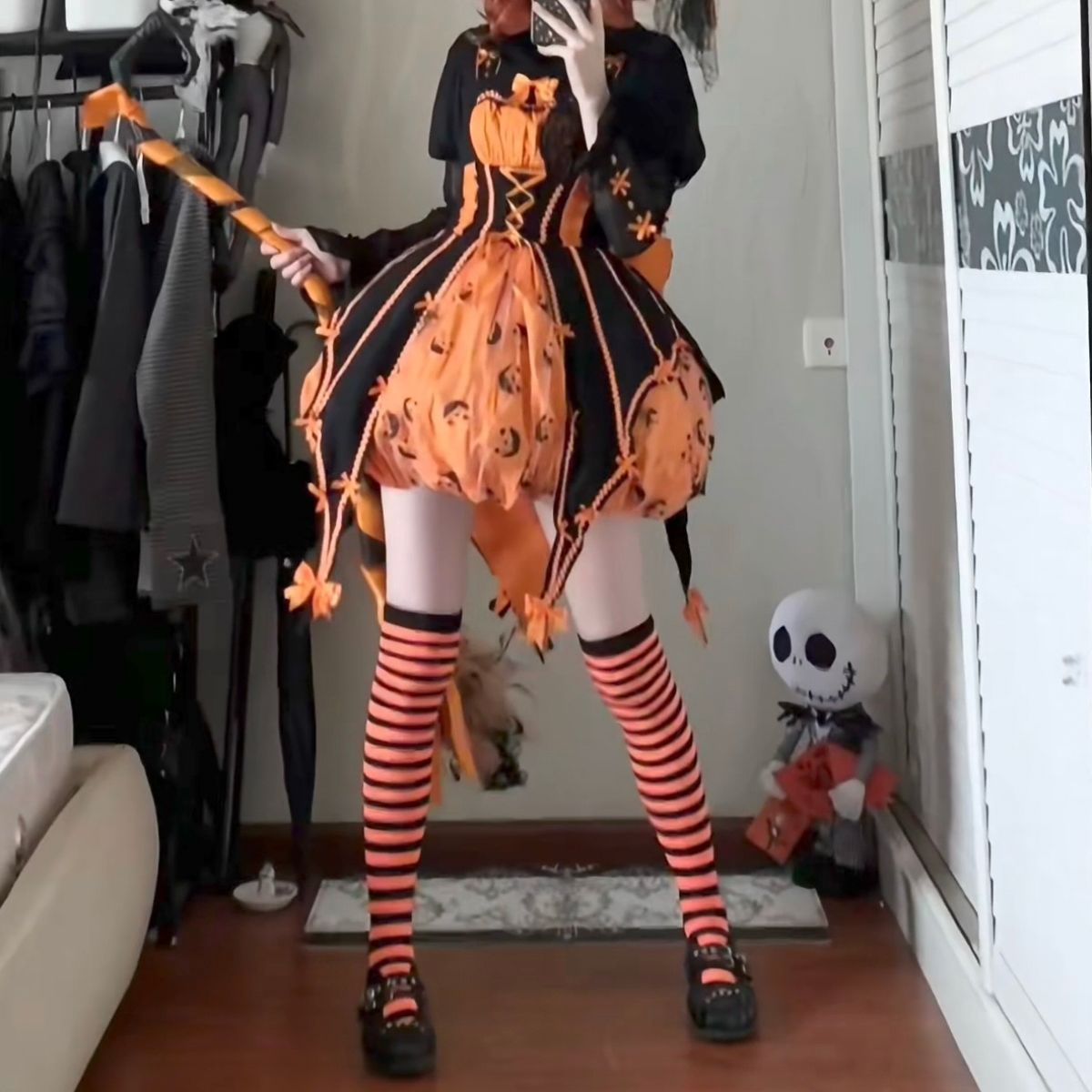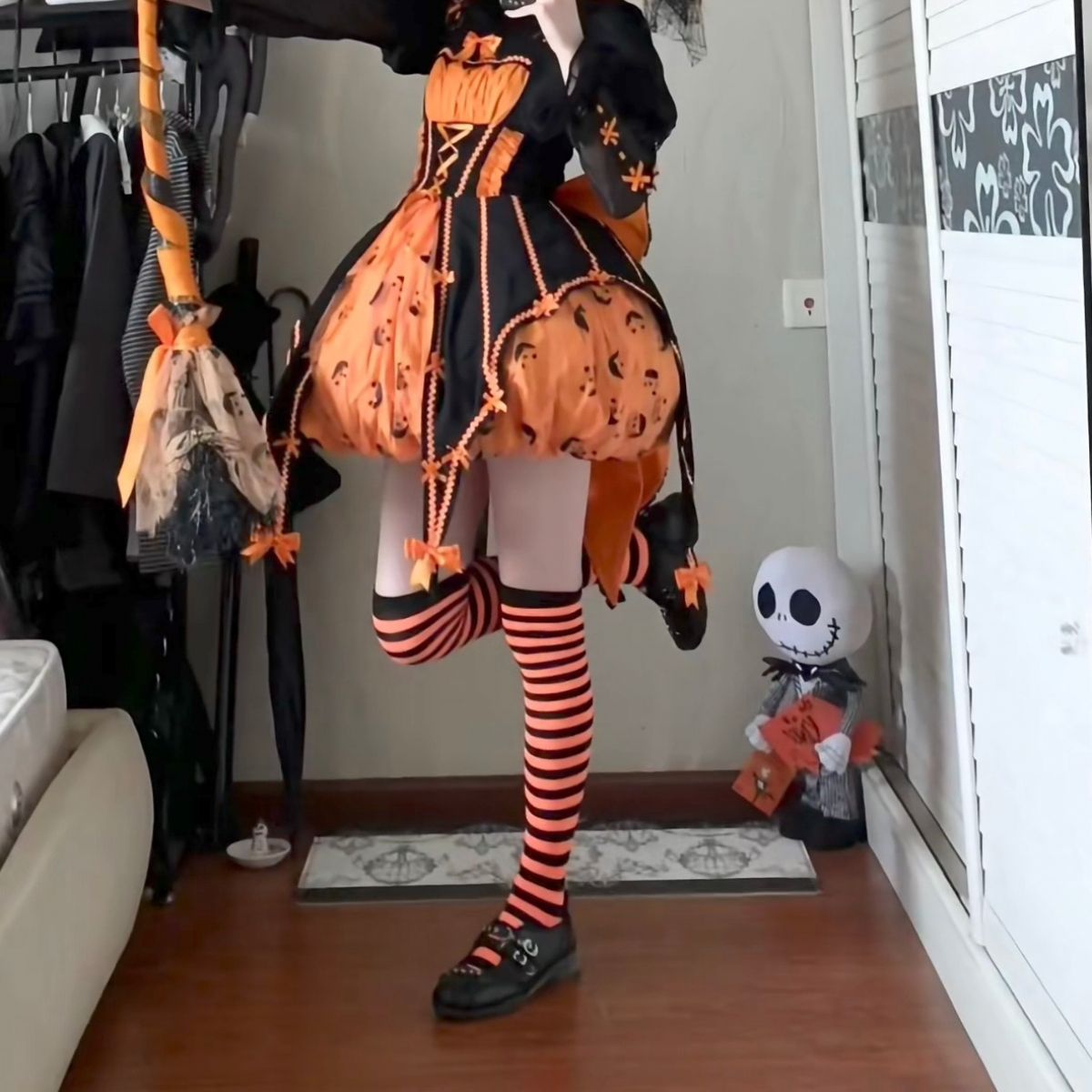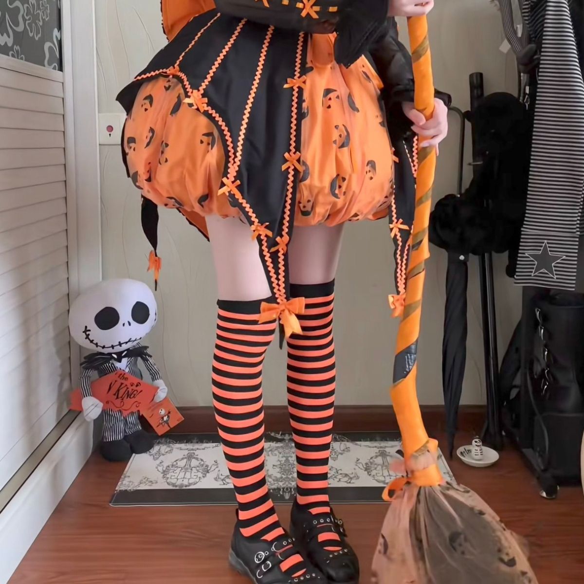 Хэллоуинские чулки выше колена в черно-оранжевую полоску, стильный японский уникальный вариант для девушек JK