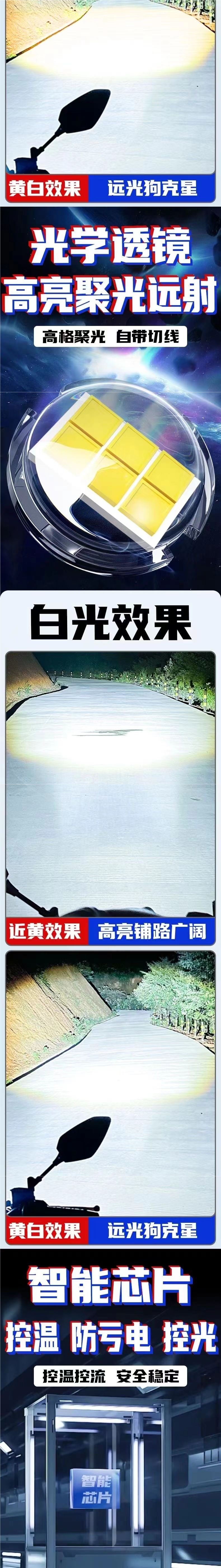 Светодиодный свет мотоцикла электрического транспортного средства сильный свет трехглазый прожектор ультраяркий лазерный внешний фонарь двухцветный дальний и ближний интегрированный