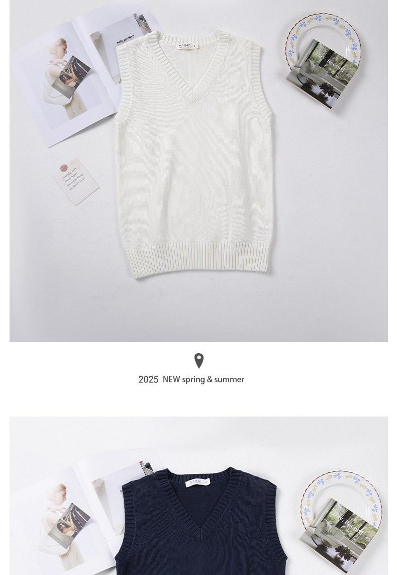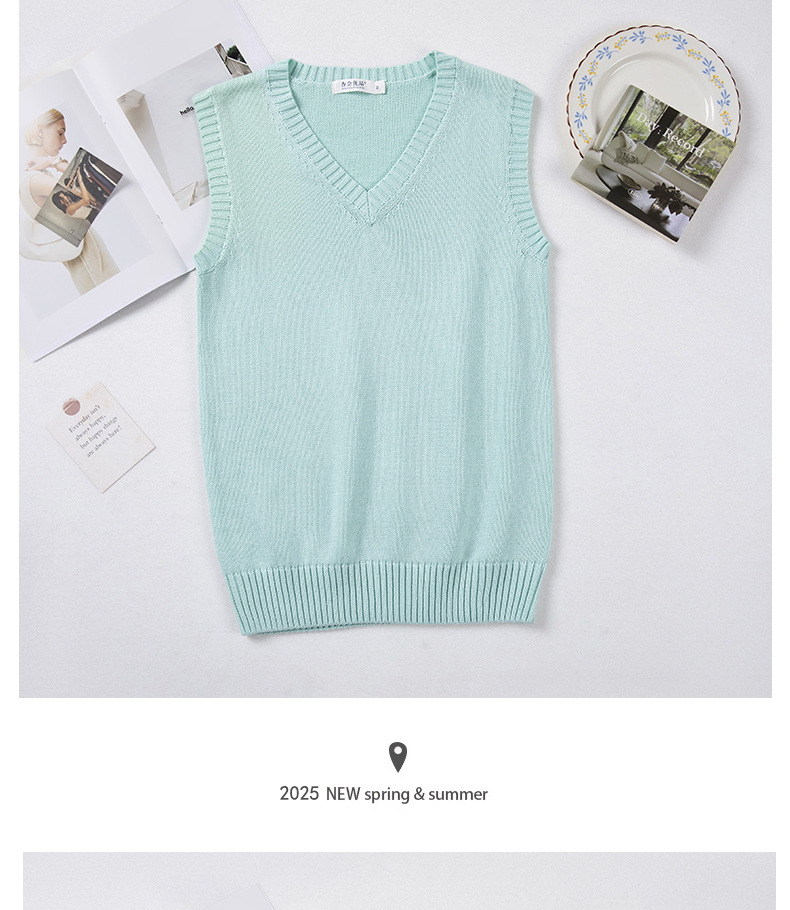 Маленький жилет для колледжа, популярный базовый однотонный жилет, универсальный жилет, тонкий многослойный вязаный пуловер