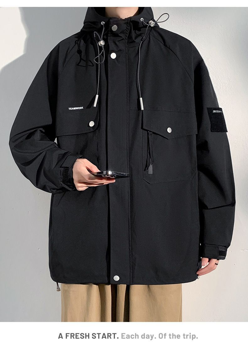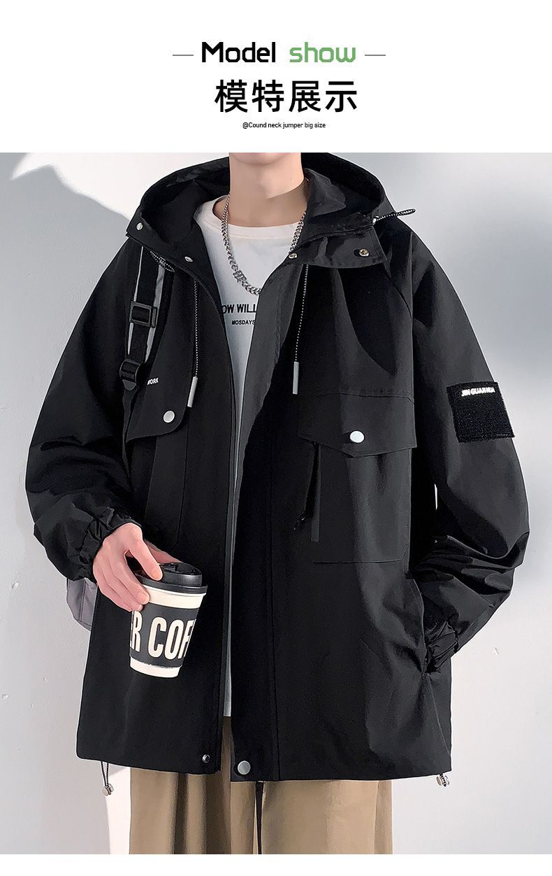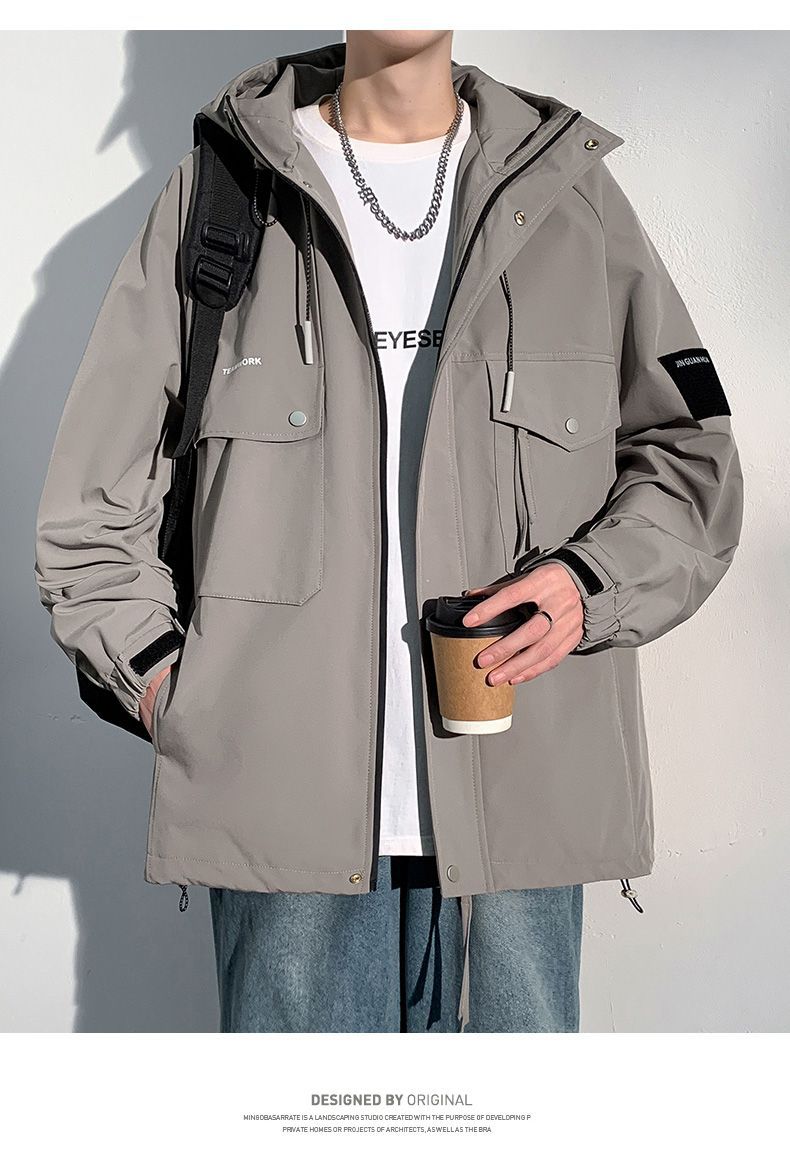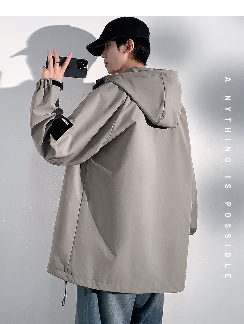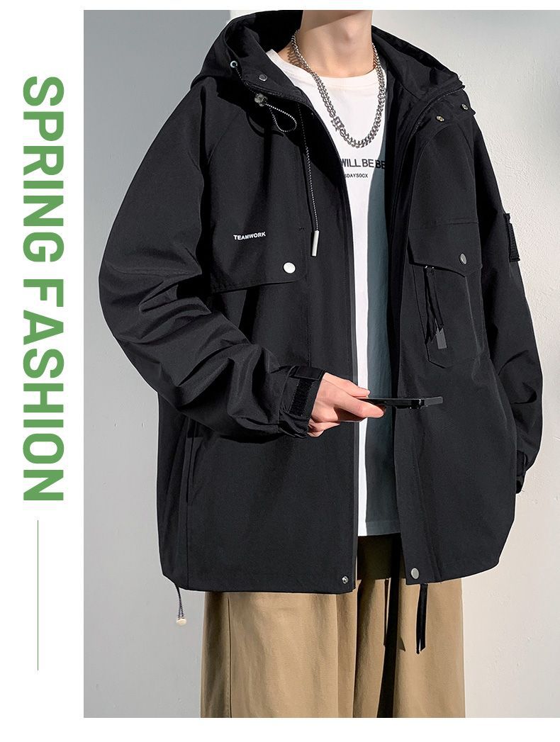 Куртка для работы мужчин, весна-осень, модная, универсальная, свободного кроя, плюс размер, повседневная, с капюшоном, ветровка