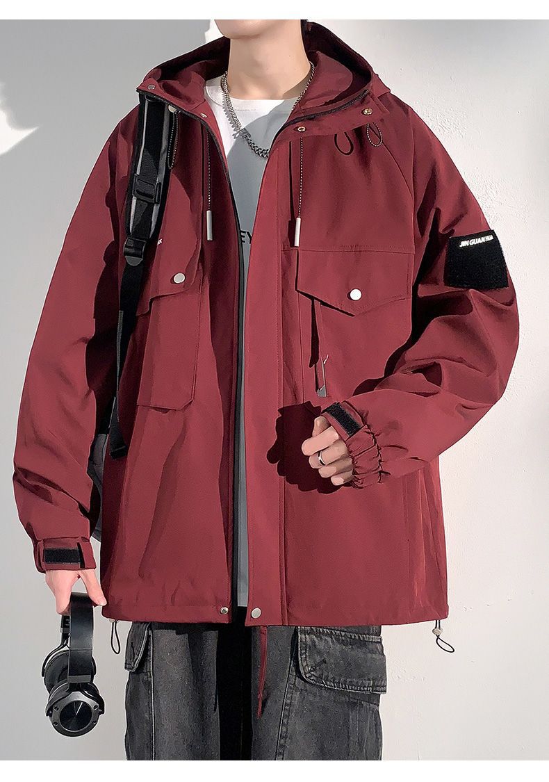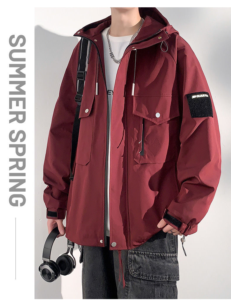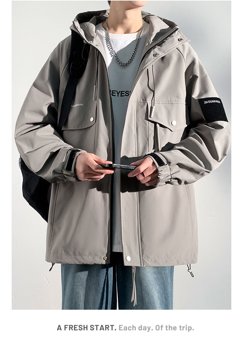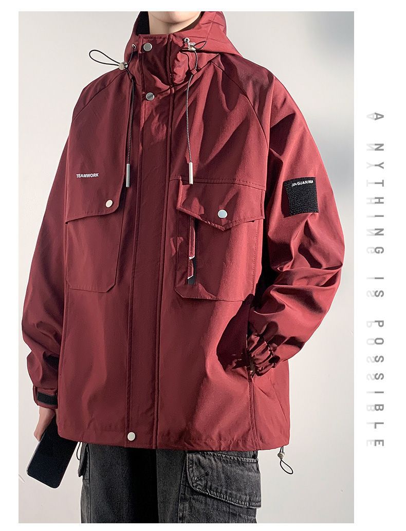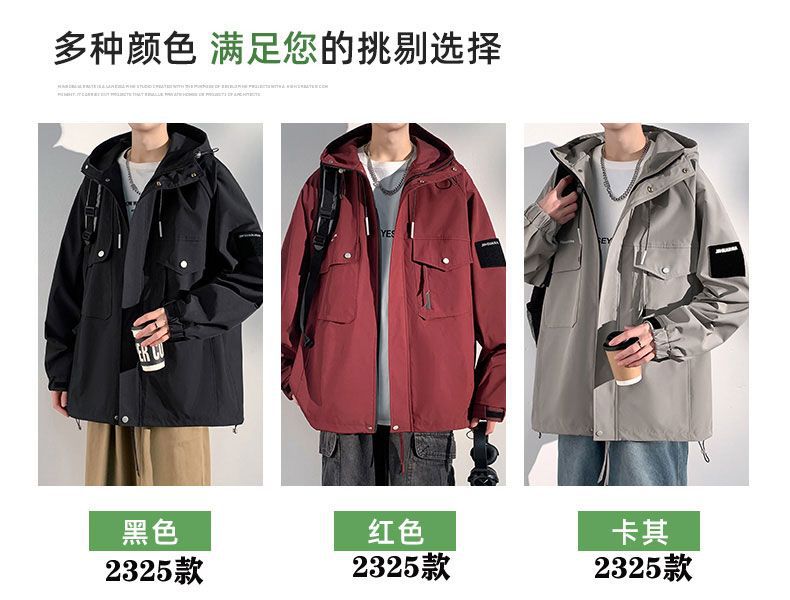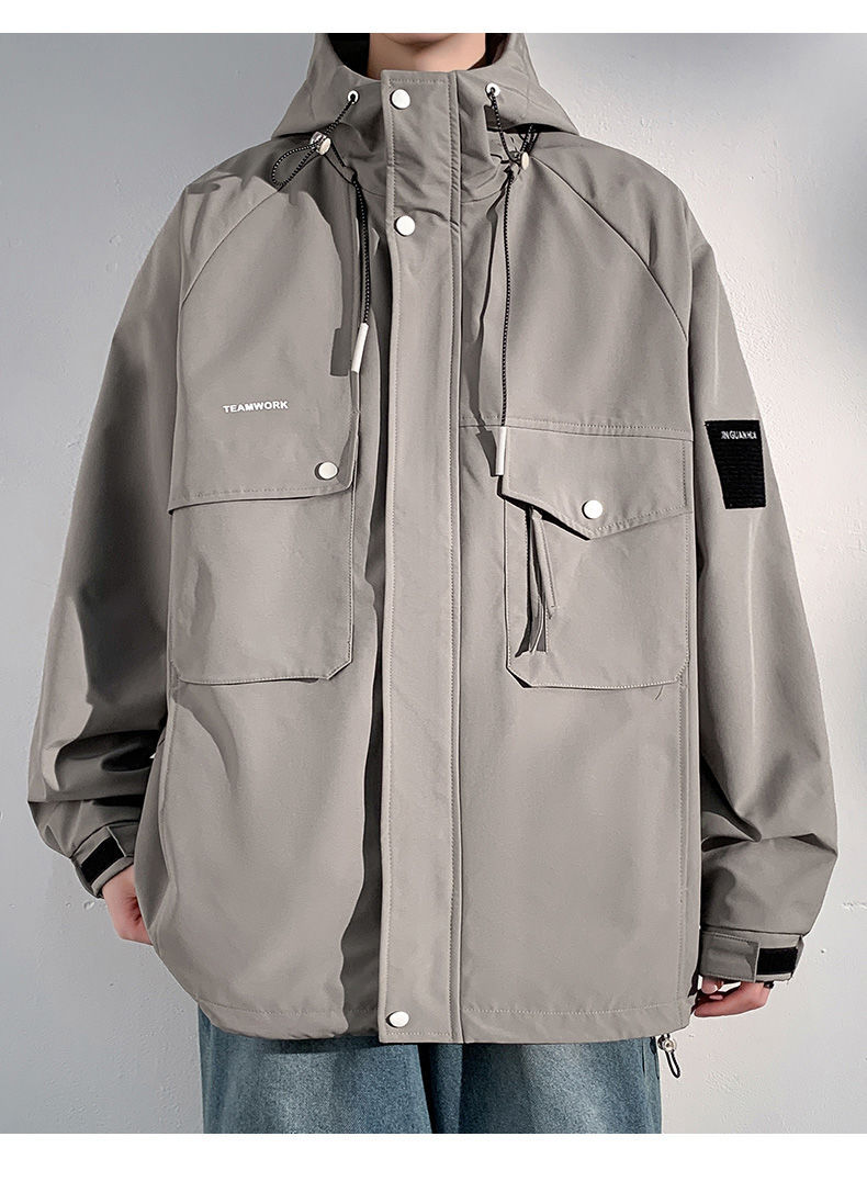 Куртка для работы мужчин, весна-осень, модная, универсальная, свободного кроя, плюс размер, повседневная, с капюшоном, ветровка