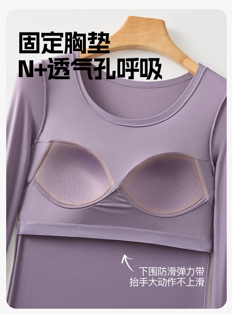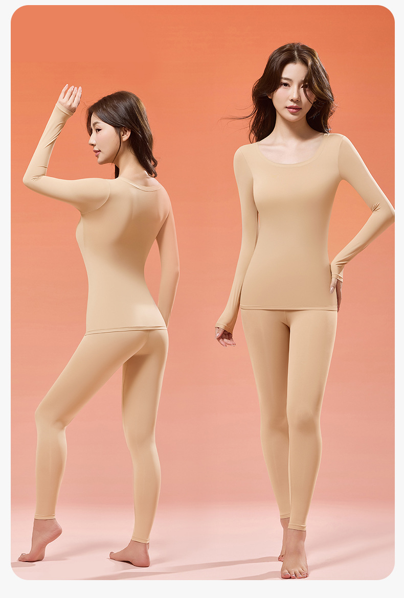 Теплый комплект с чашечным слоем для осени и зимы, длинный рукав, невидимая маска, высокоэластичный бесшовный базовый слой для женщин