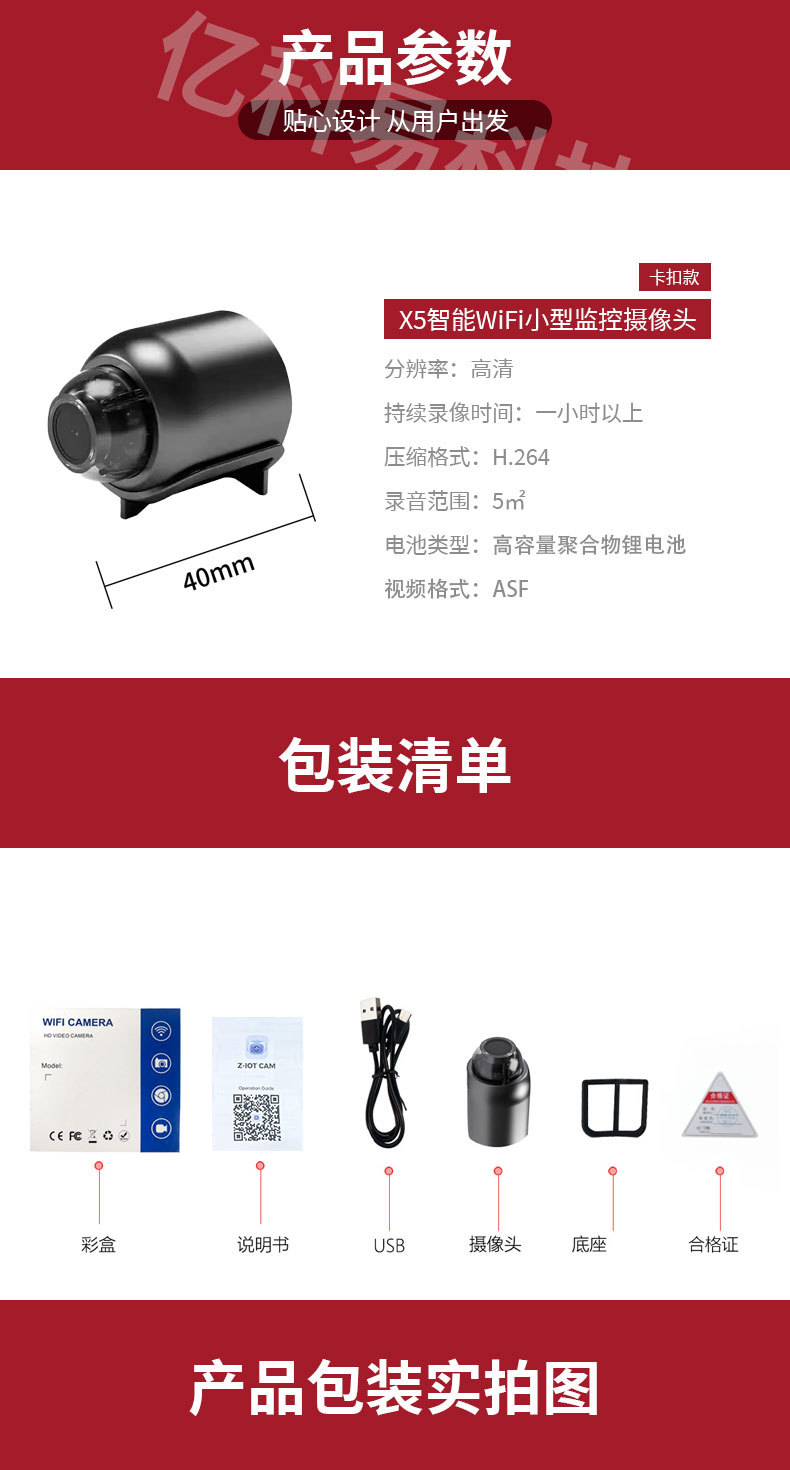 Готовая к продаже камера X5 с Wi-Fi, дистанционное управление, 1080P, инфракрасное ночное видение, беспроводная умная камера наблюдения