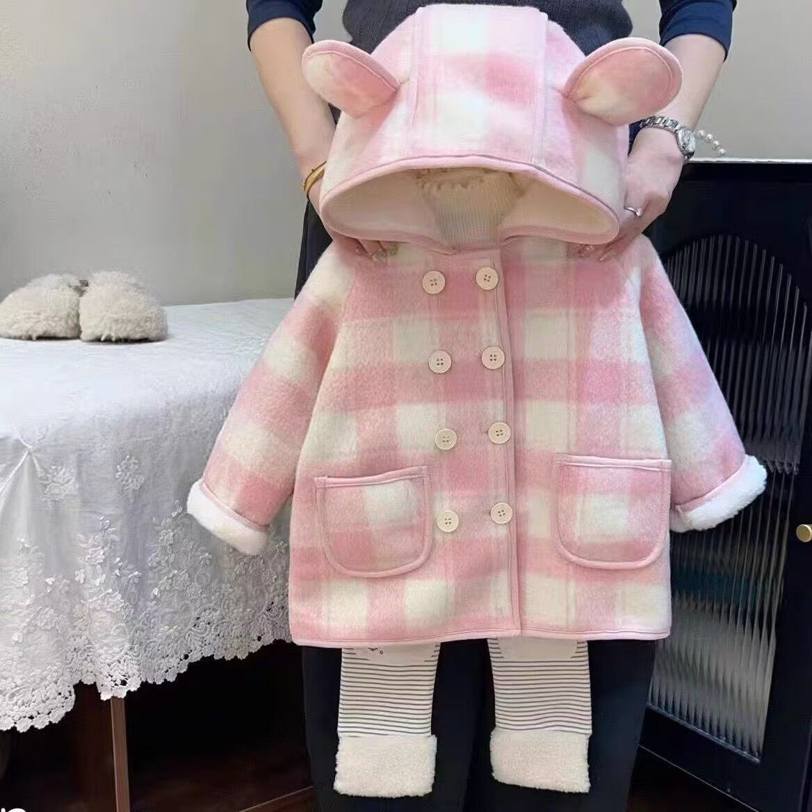 Шершавая куртка для девочек, новая осенняя и зимняя, модная куртка для девочек среднего размера с клетчатым узором