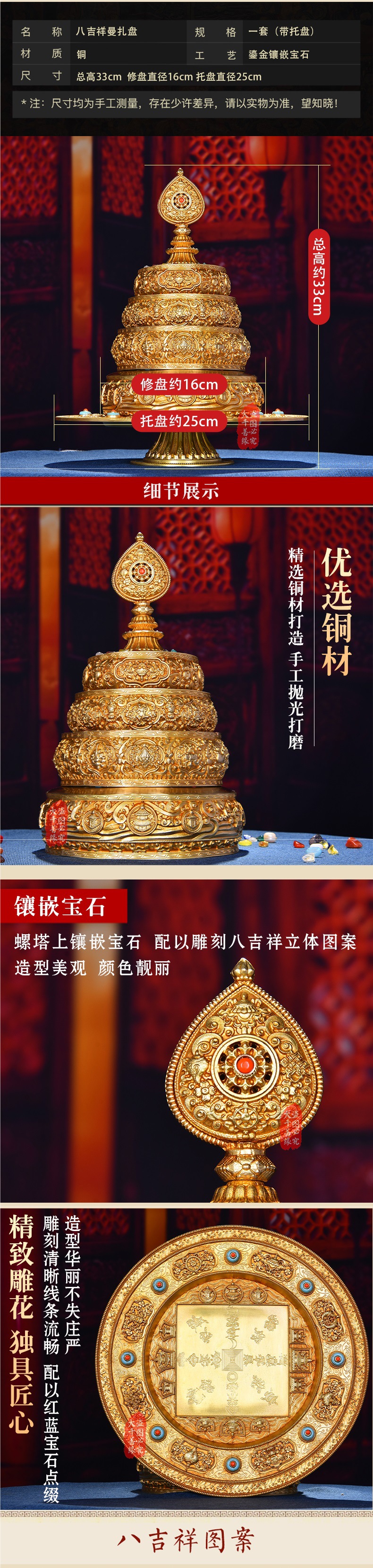 Чистая медная мандала с драгоценными камнями, 37 куч, мандала 16 см для практики