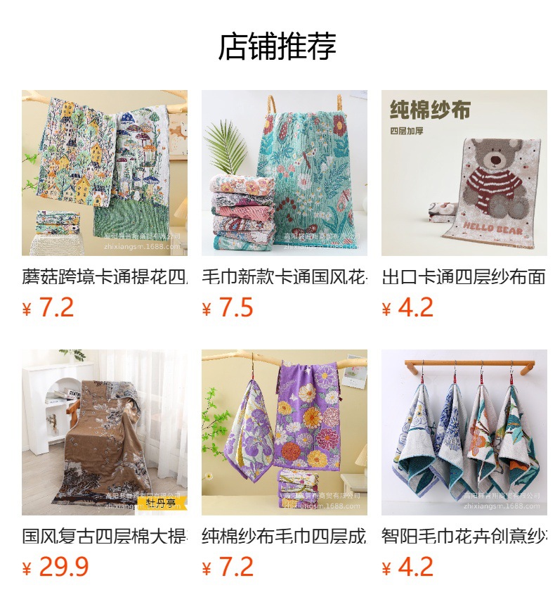 纯棉四层纱布 面巾34*74cm