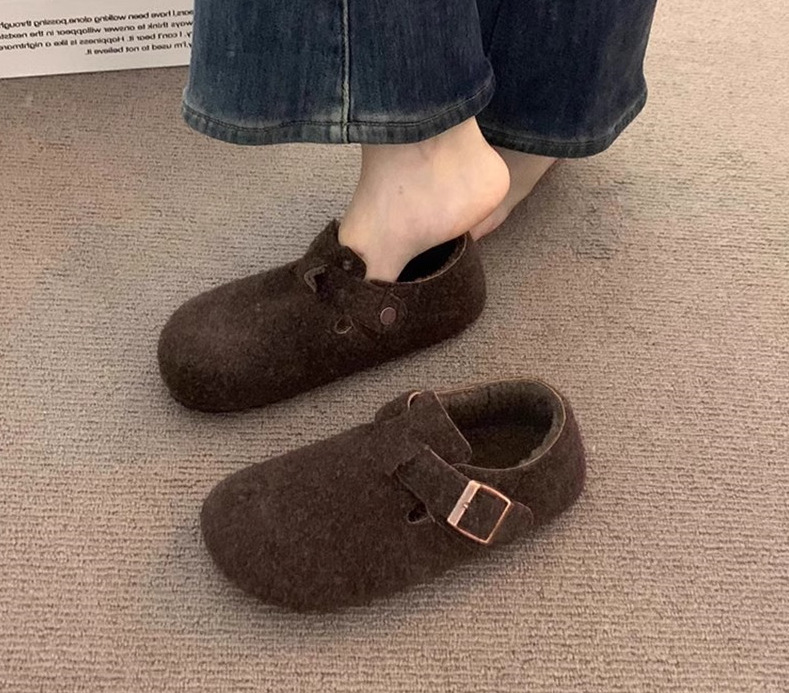 Новые осенние французские ретро туфли с круглым носом и флисовой подкладкой, теплые хлопковые туфли для женщин