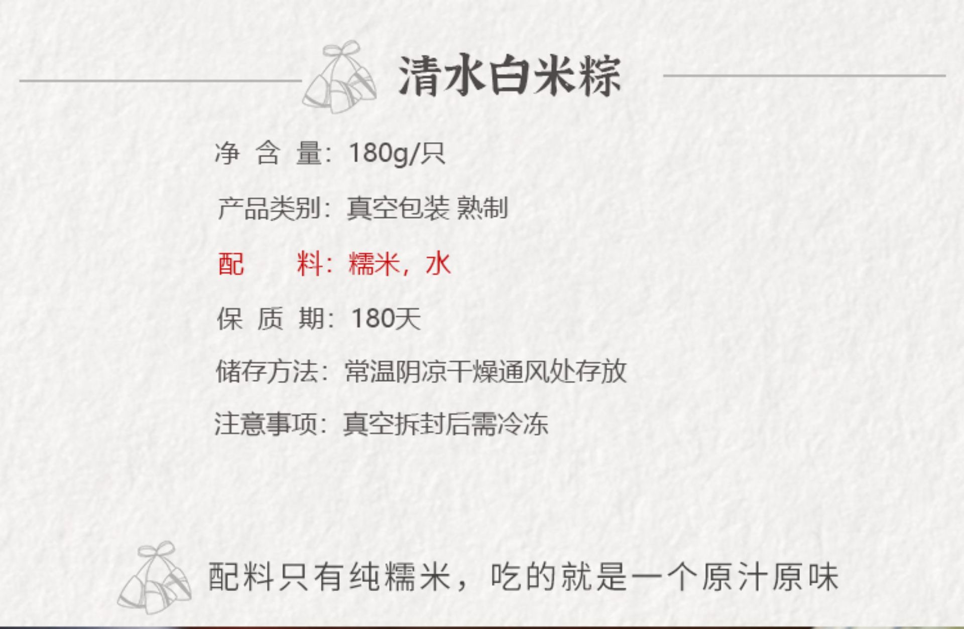 📦 | Qingshui white rice dumplings 180g [spot color bag packaging] | ¥3.0 / ≈ 36 ₽ | 985 | 6134668903860 | |