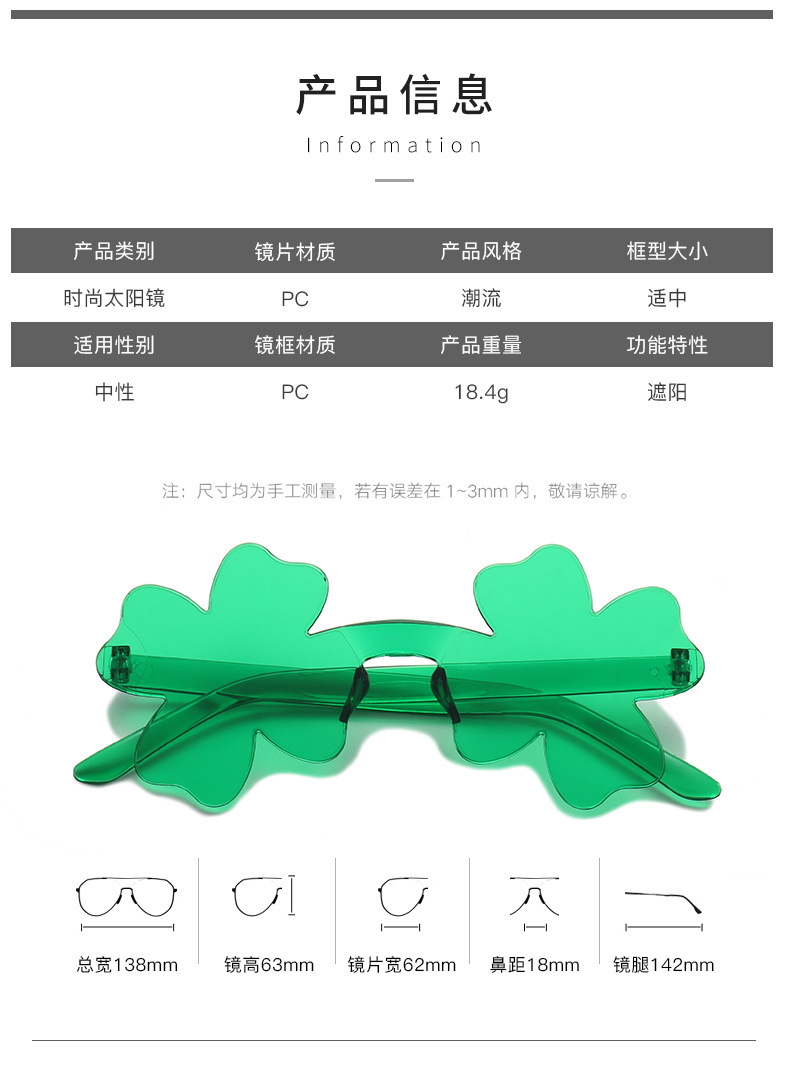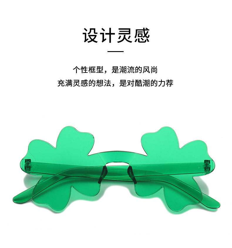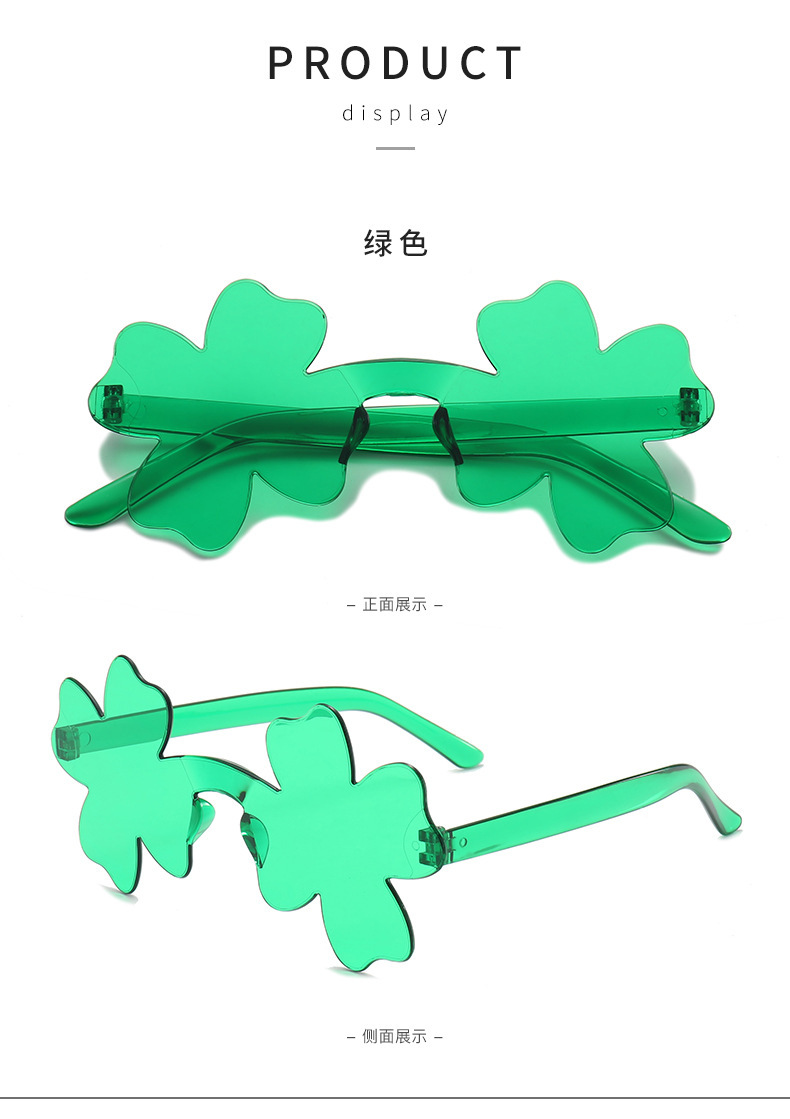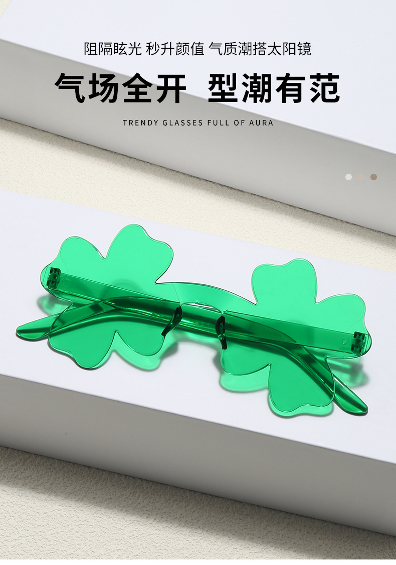 Новые европейские и американские безрамочные солнцезащитные очки с четырехлистным клевером для праздника Святого Патрика