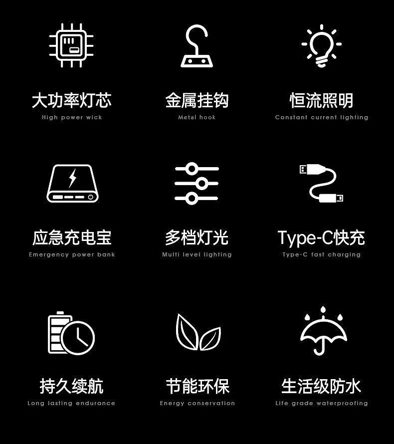 ![]() | 5000ma capacity] 16h [1500w medium brightness] | 3-level dimming + electronic display + power bank function + hook | ¥23.89 / ≈ 288 ₽ | 999 | 6100721846511 | |
