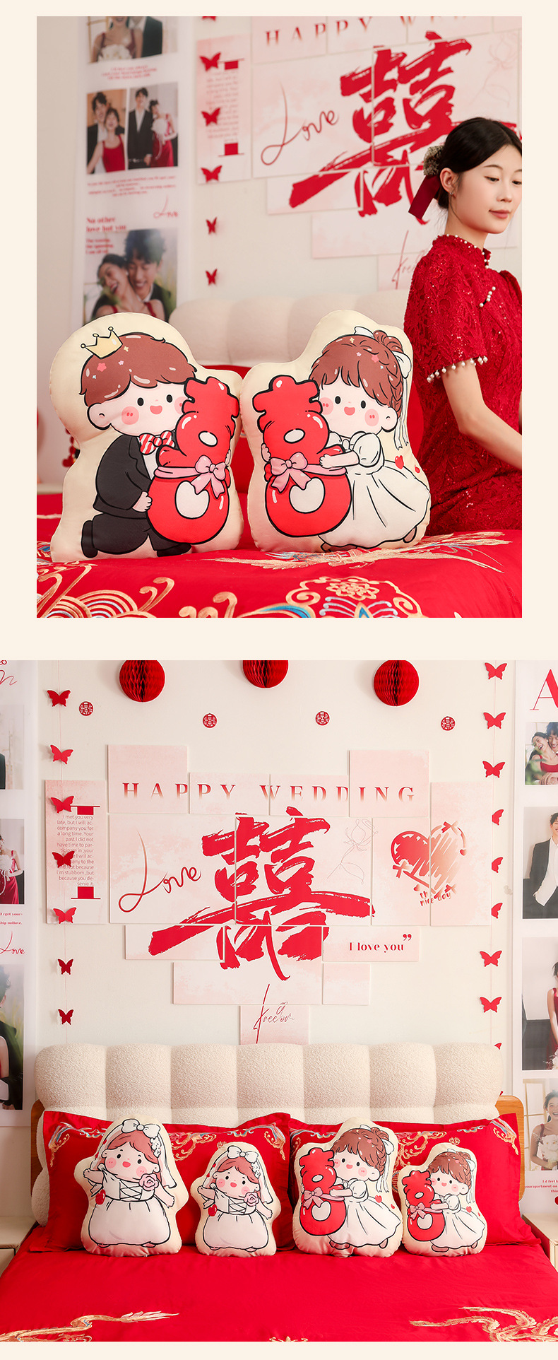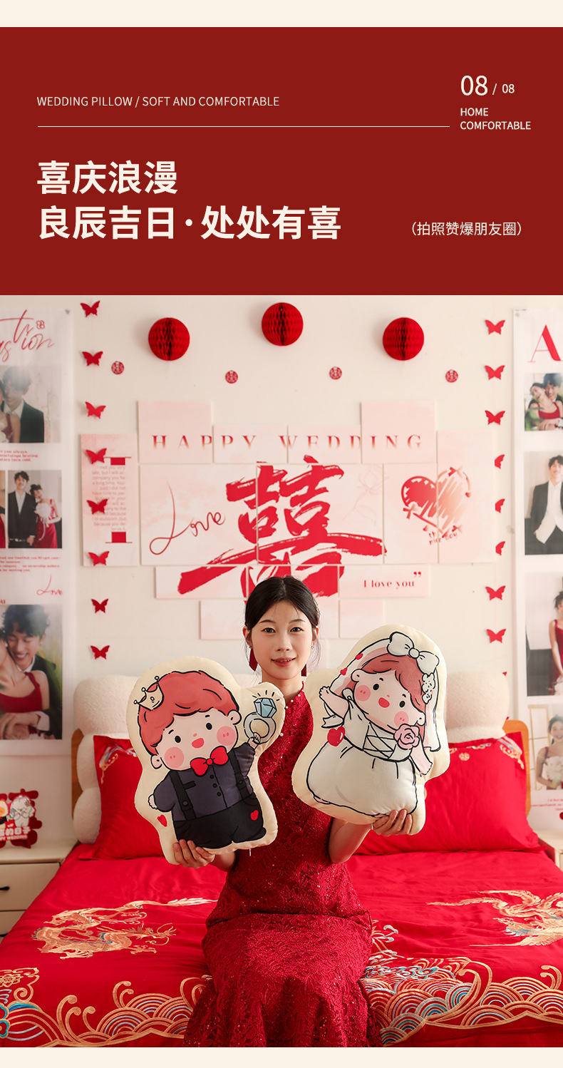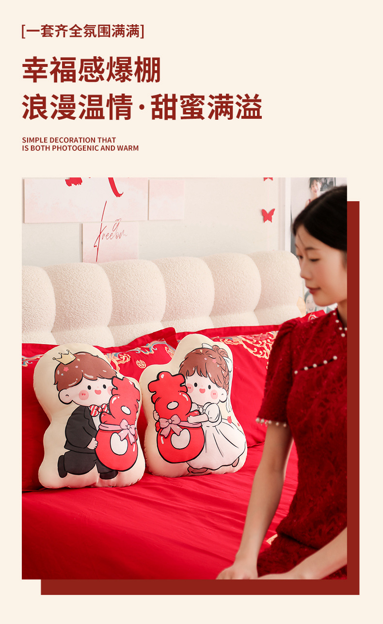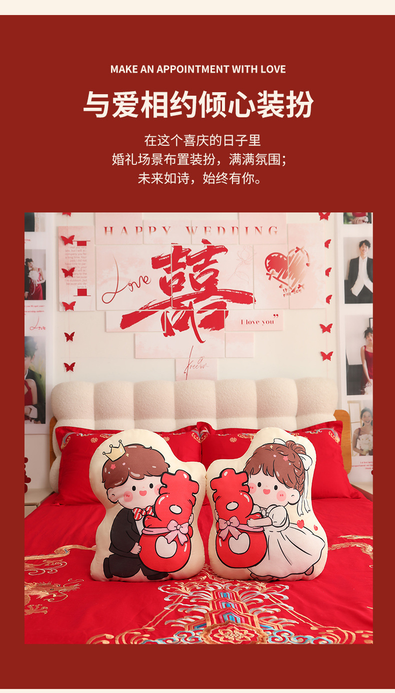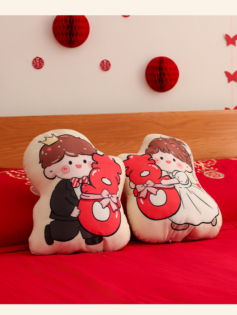 Пара подушек с символом двойного счастья, новые свадебные куклы, высококачественные подарки для невесты и жениха, куклы для свадебного торжества