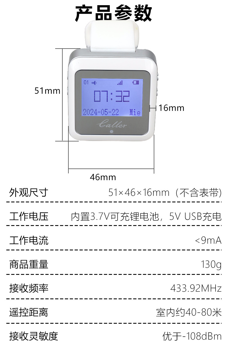 呼叫器无线茶楼餐厅咖啡厅网吧银行酒店台卡服务铃迅铃手表呼叫器 无线腕表呼叫器远距离信号强餐饮酒店别墅家用老人小孩手表接收器 无线呼叫器433服务铃餐厅餐饮酒店饭店影院酒吧315呼叫铃一键呼叫 技师震动手环洗浴应急一键报警手表呼叫器会所房间紧急提醒器 手表无线呼叫器餐厅茶楼酒店咖啡厅茶餐厅外贸呼叫器服务按铃 手表接收器远距离信号强餐饮酒店别墅家用老人小孩无线腕表呼叫器 医院养老院餐厅报警器呼叫器震动服务呼叫接收主机无线手表款