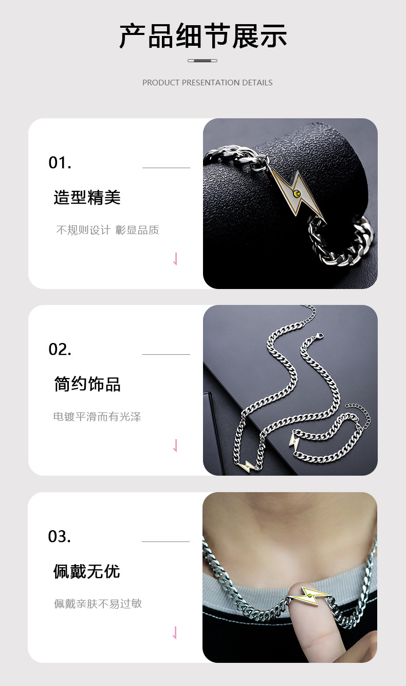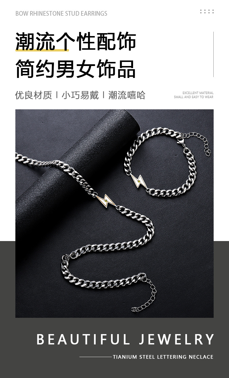 Ожерелье из титана Lightning для мужчин, хип-хоп трендовый дизайн, высококачественный, простой, универсальный, персонализированный нишевый подарок-браслет для женщин