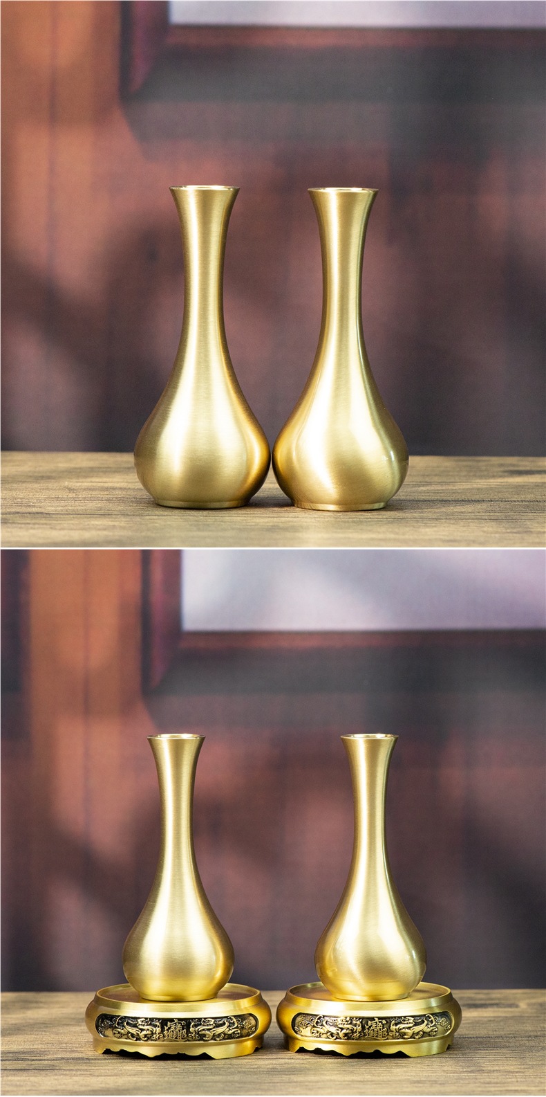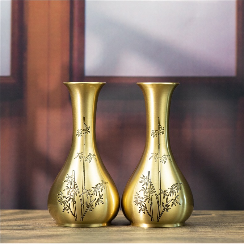 Чистая медная маленькая ваза, настольные украшения, медная ваза для подношений Будде, цветочная ваза, нефритовая ваза