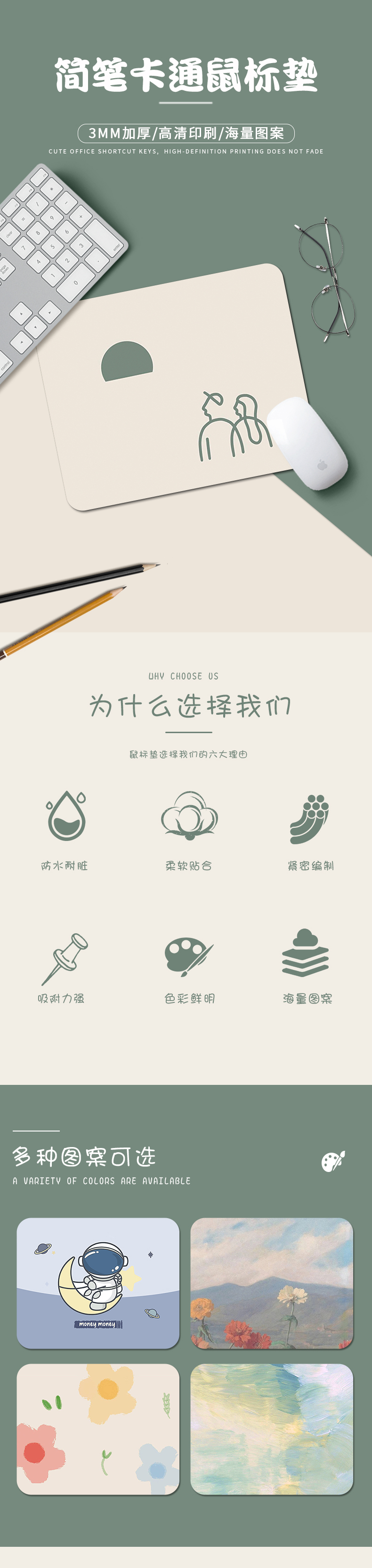 Простой и свежий коврик для мыши, скользящий, офисный, для ноутбука, с защитой запястья, стойкий к пятнам, креативный и милый
