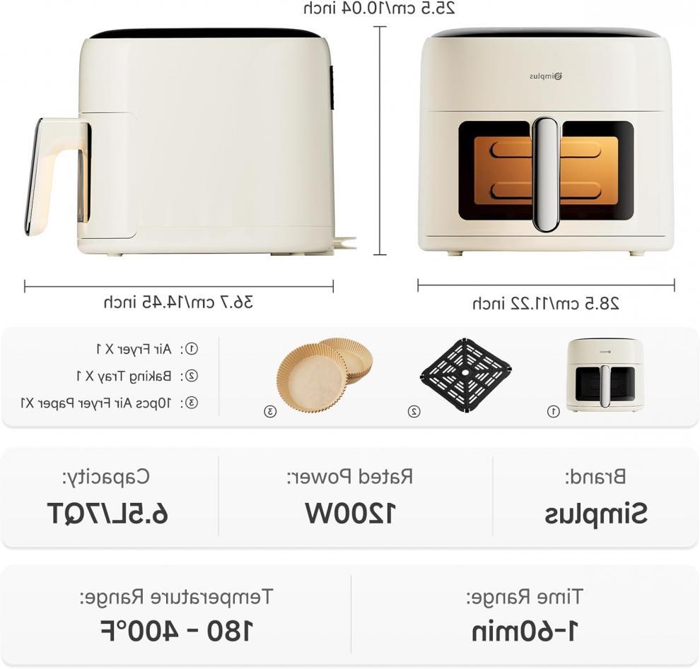 Аэрогриль Simplus 7 Qt с окном для просмотра, большая емкость