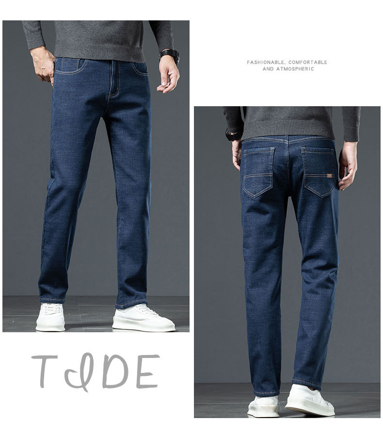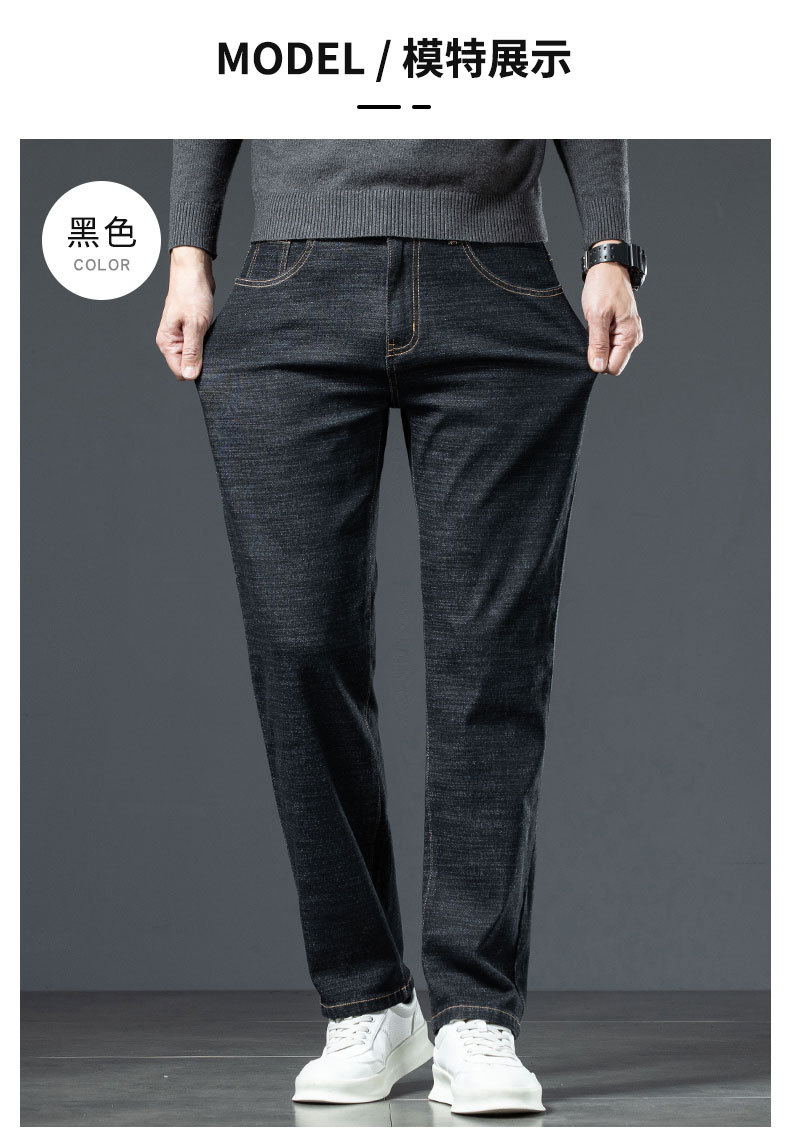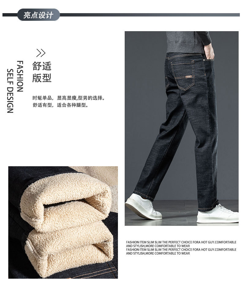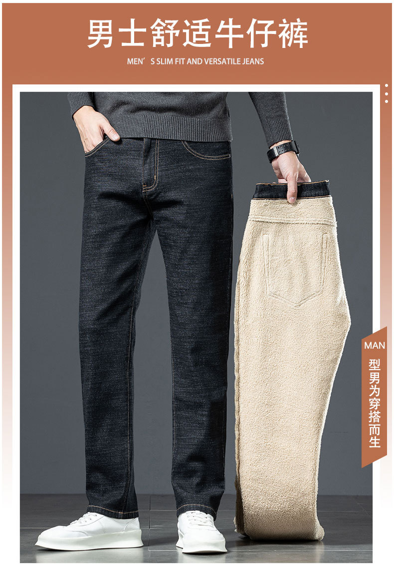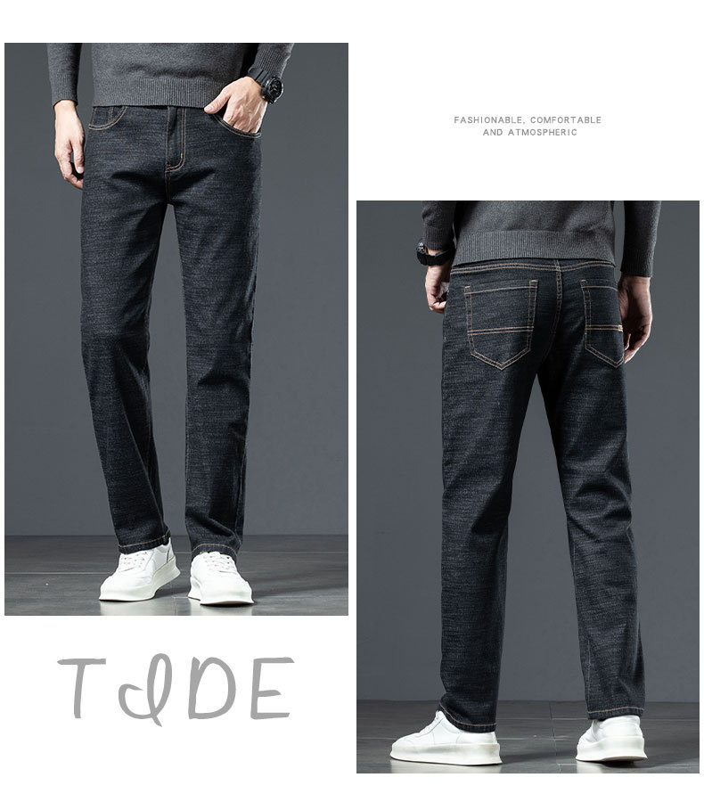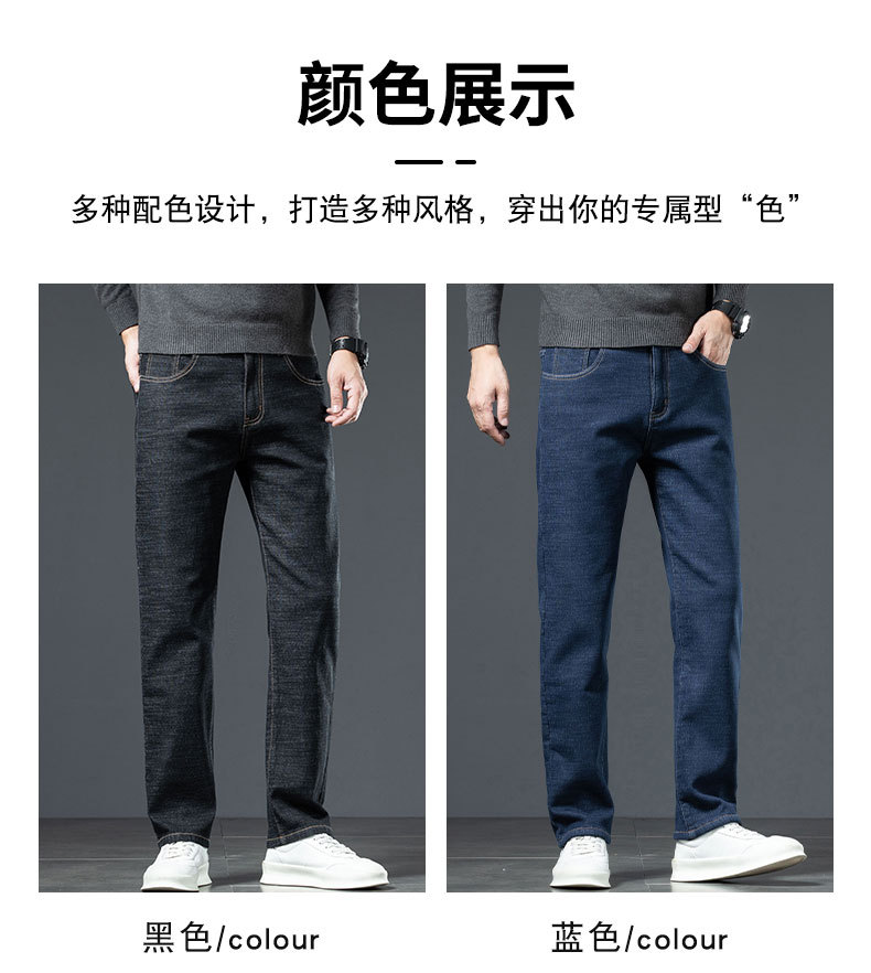 Зимние новые джинсы с флисовой подкладкой, утолщенные, теплые, однотонные, универсальные, прямые брюки, джинсы для бизнеса для мужчин