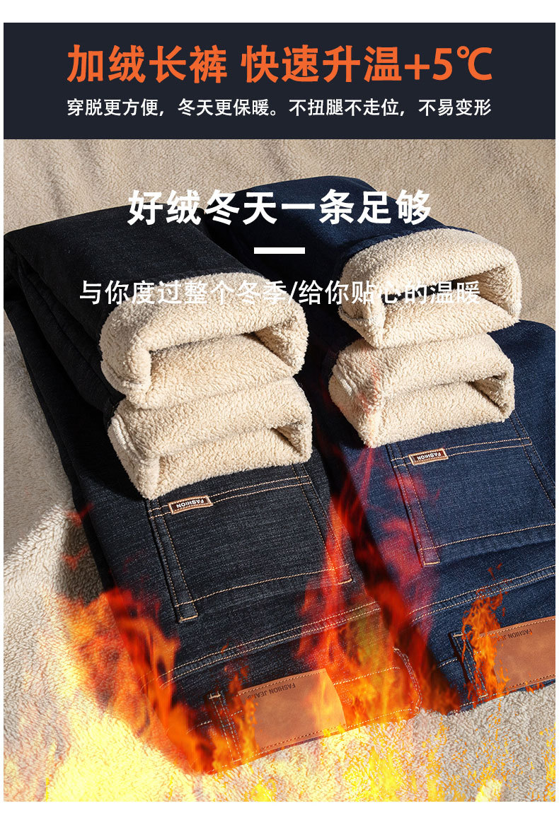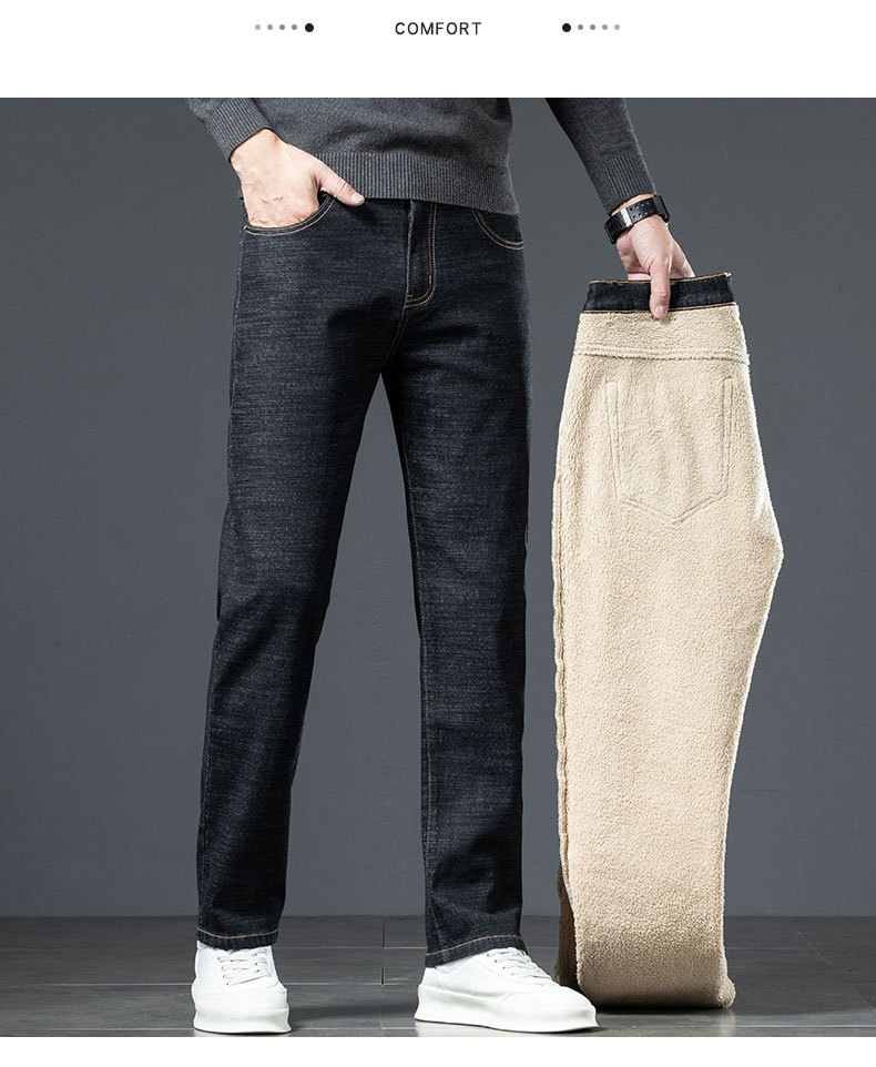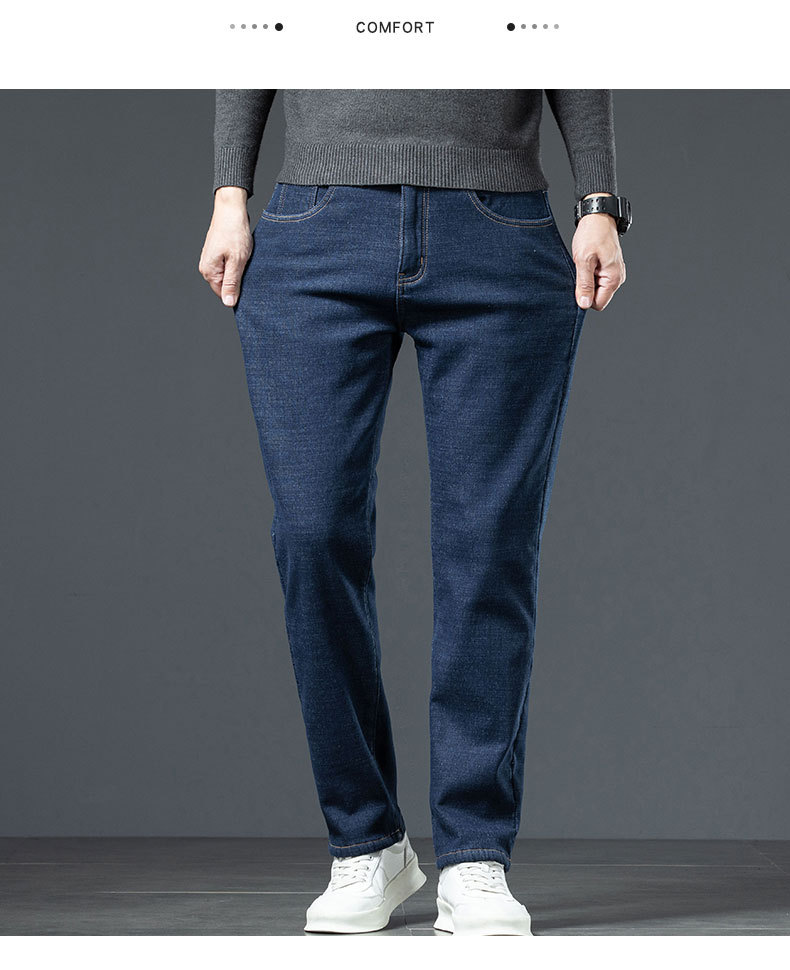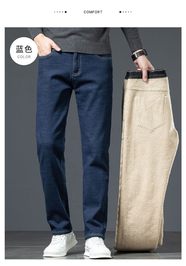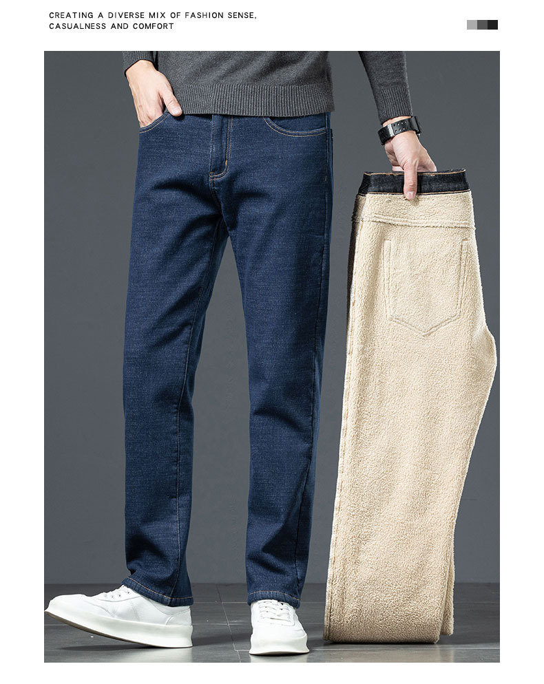 Зимние новые джинсы с флисовой подкладкой, утолщенные, теплые, однотонные, универсальные, прямые брюки, джинсы для бизнеса для мужчин