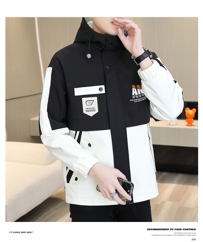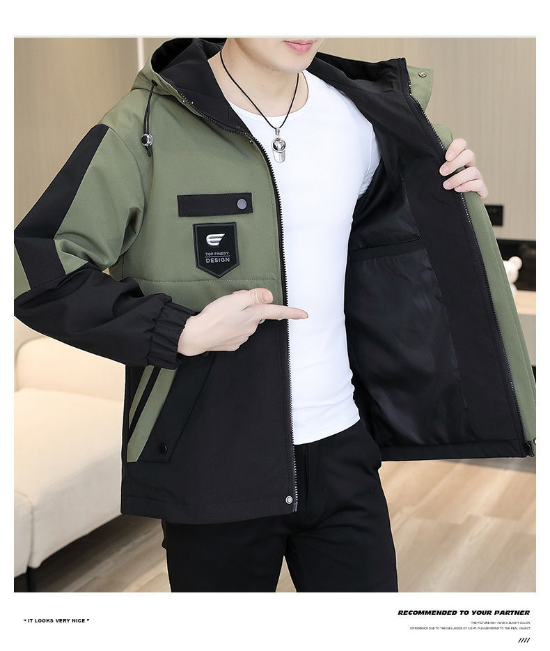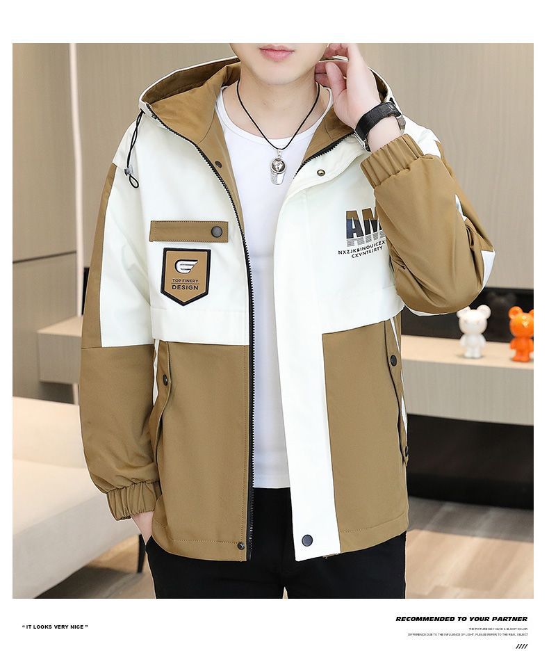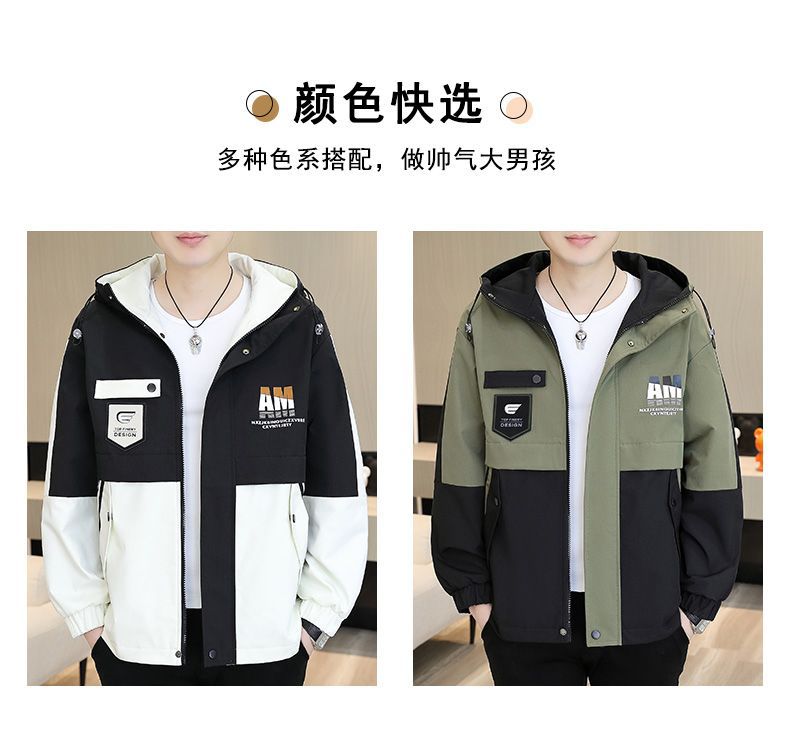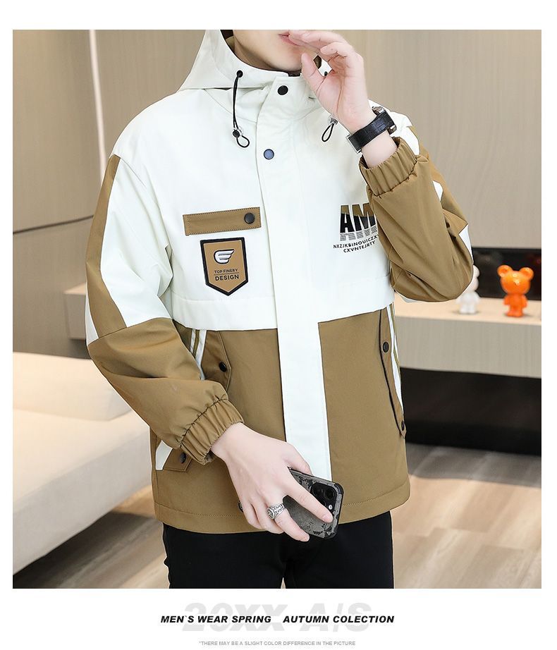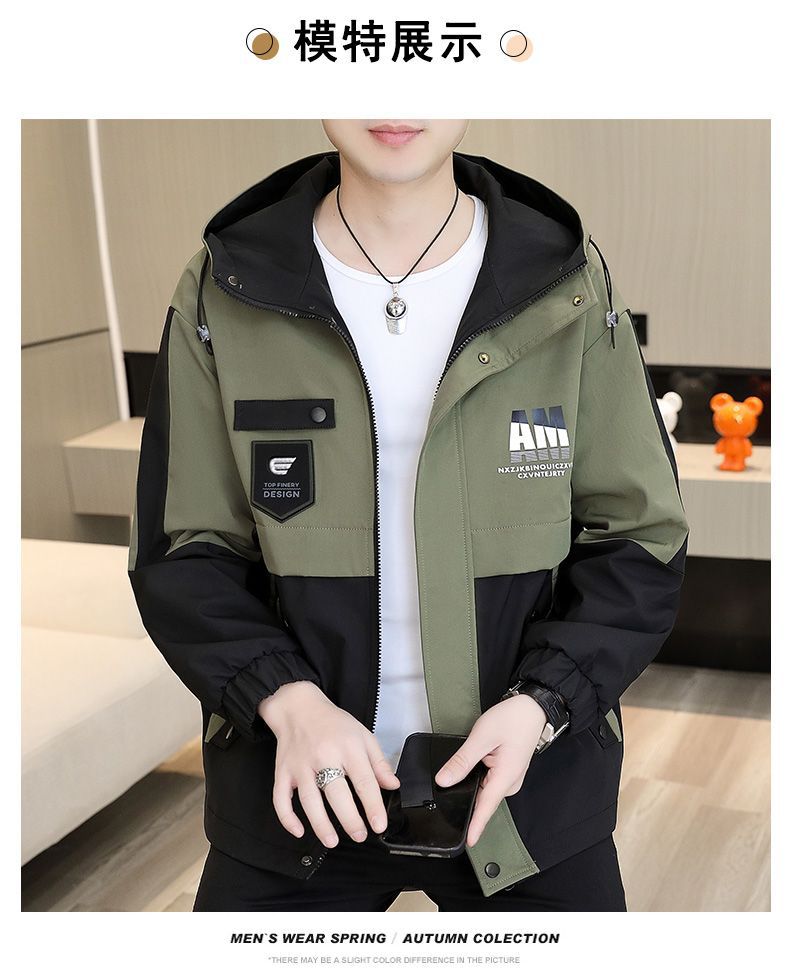Куртка для мужчин весна-осень, модный корейский стиль, повседневная универсальная, с капюшоном, ветровка, тонкая, свободного кроя