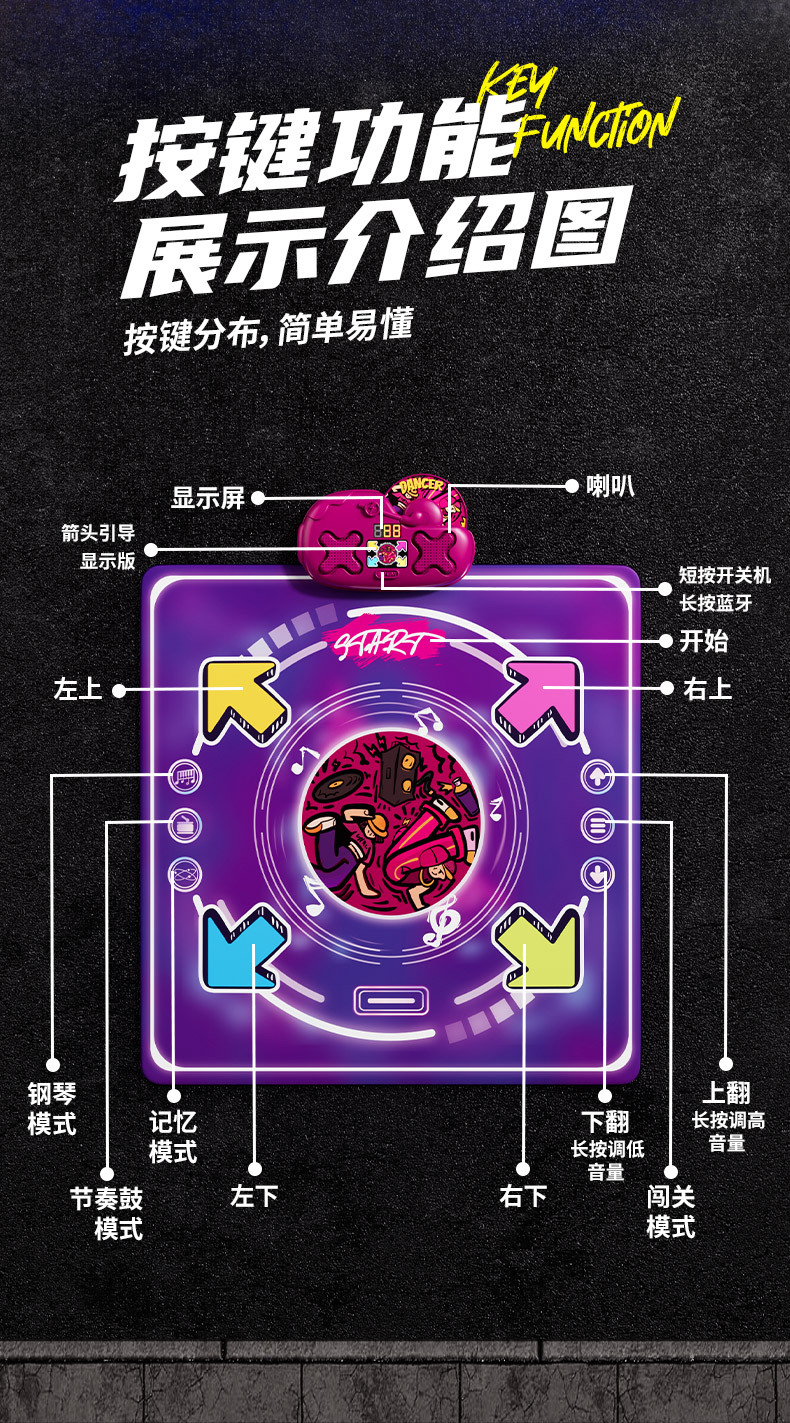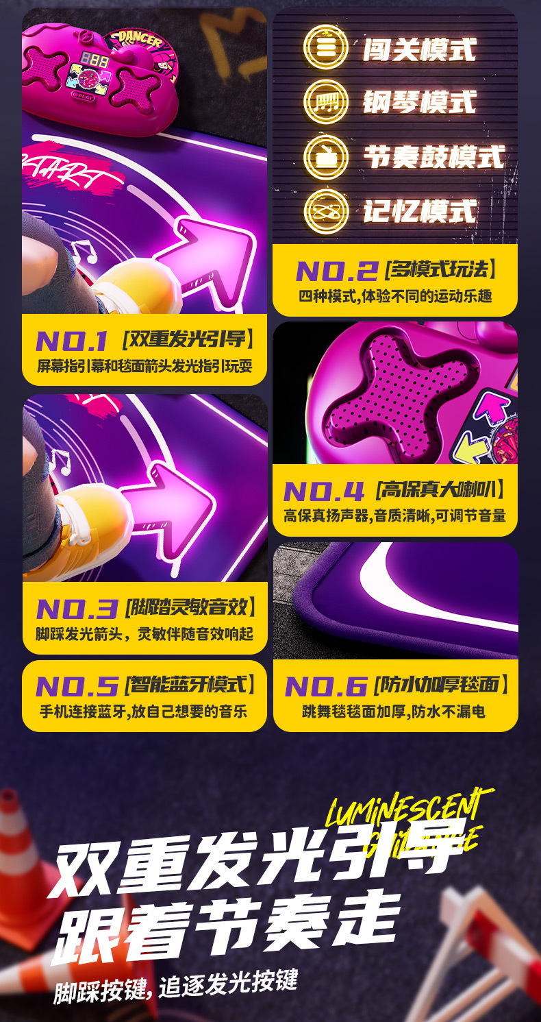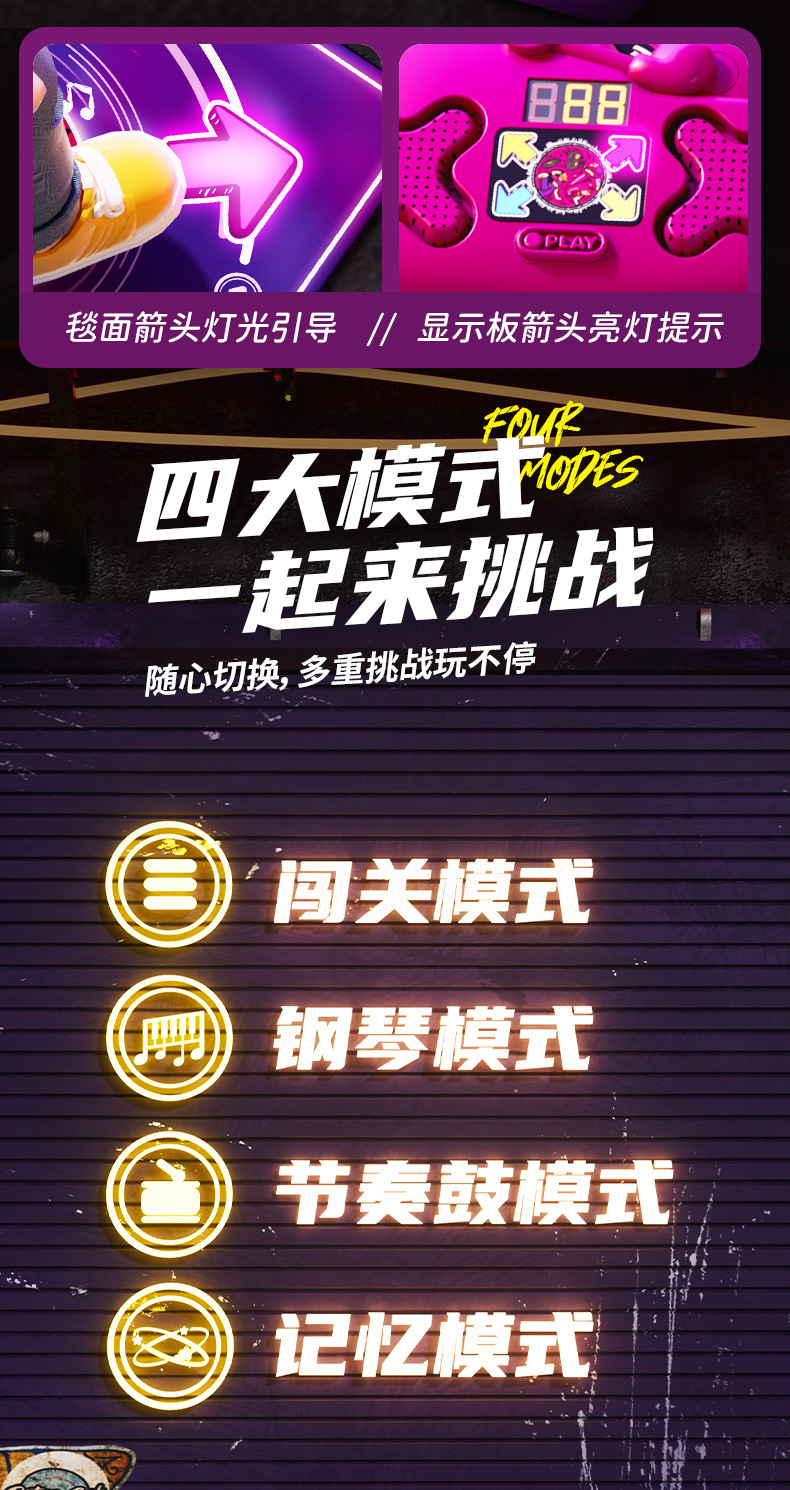 2026 популярный образовательный спортивный подарок для девочек и детей, двойной музыкальный танцевальный коврик, 6 игровых ковриков, игрушки 3