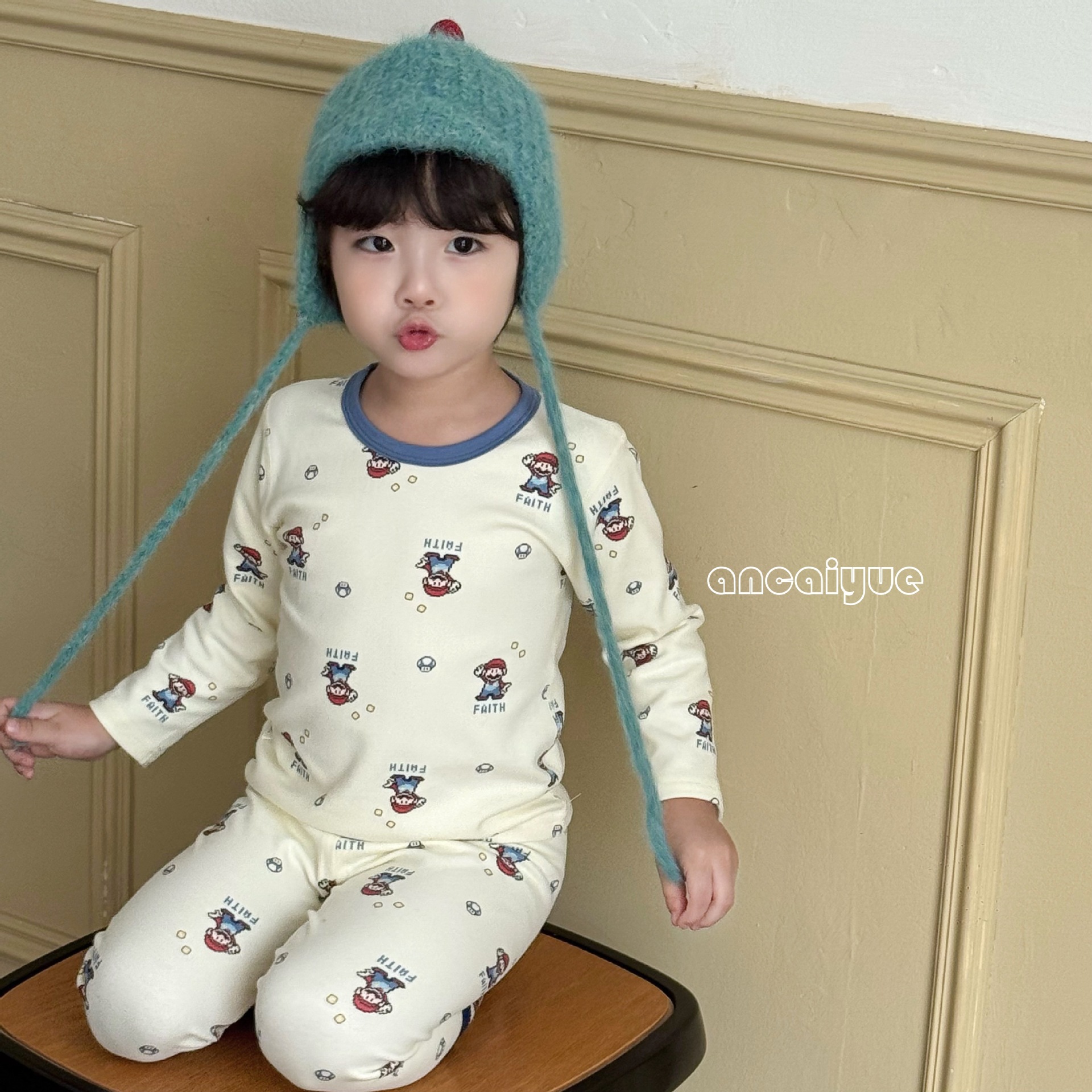 【300Г】Детское мягкое термобелье из чистого хлопка, толстый комплект пижам, осенние брюки, домашняя одежда