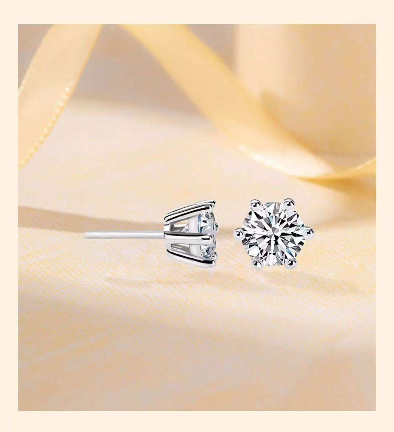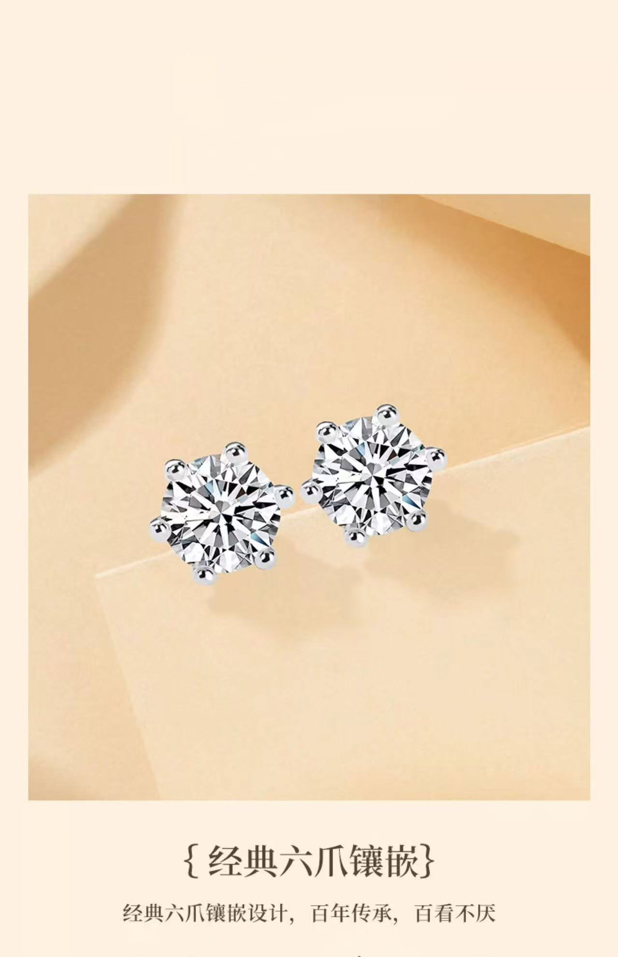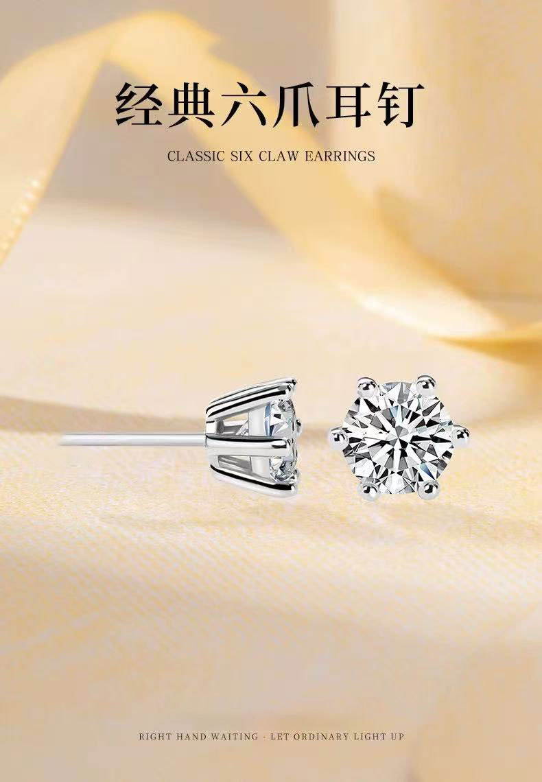Серьги из платины Pt950 с культивированными бриллиантами 30 и 50 пунктов, простые шести-лапковые серьги