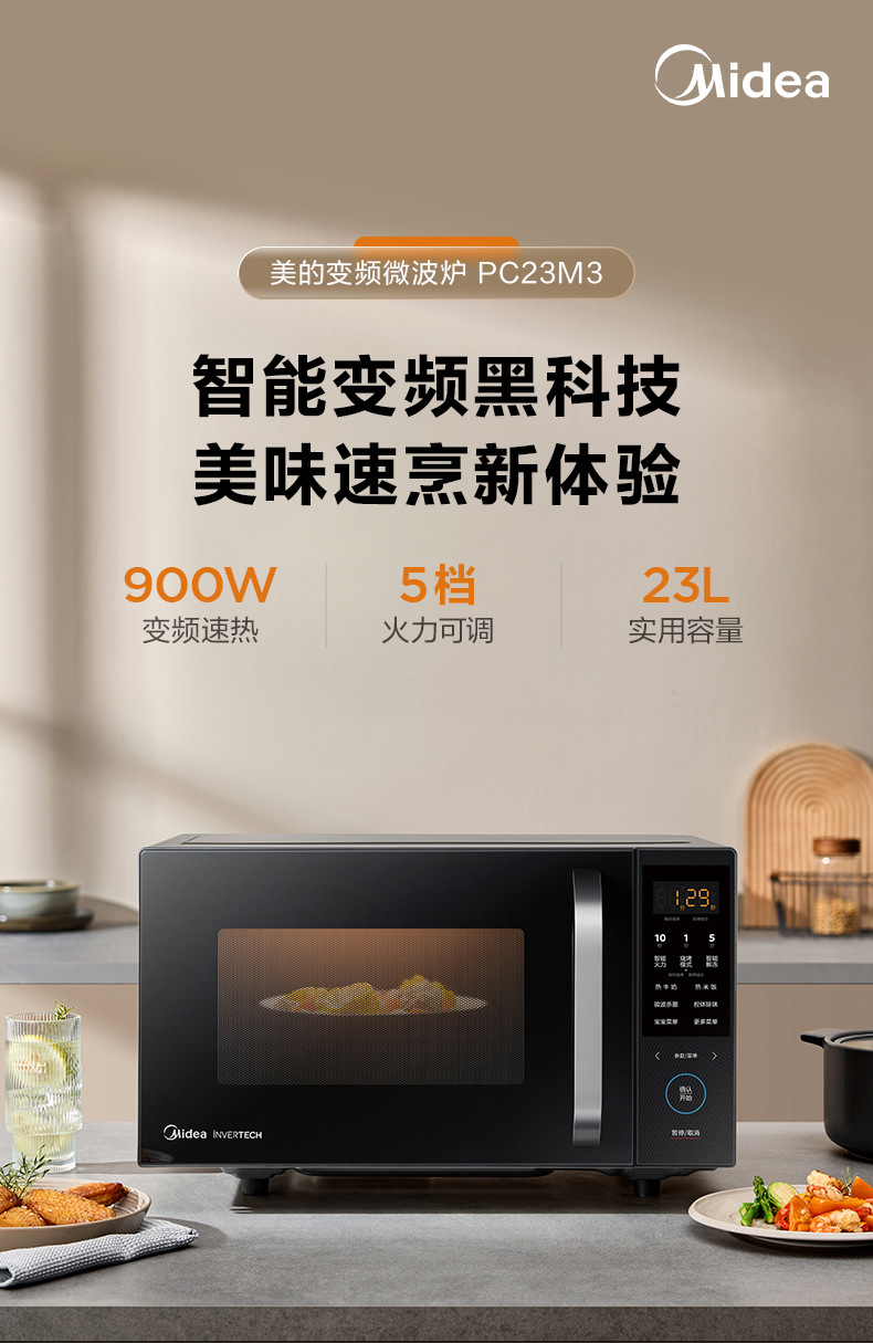Микроволновая печь Midea с переменной частотой, световая волновая печь, микроволновая барбекю, универсальный аппарат 23L, плоская панель, умная Pc23M3