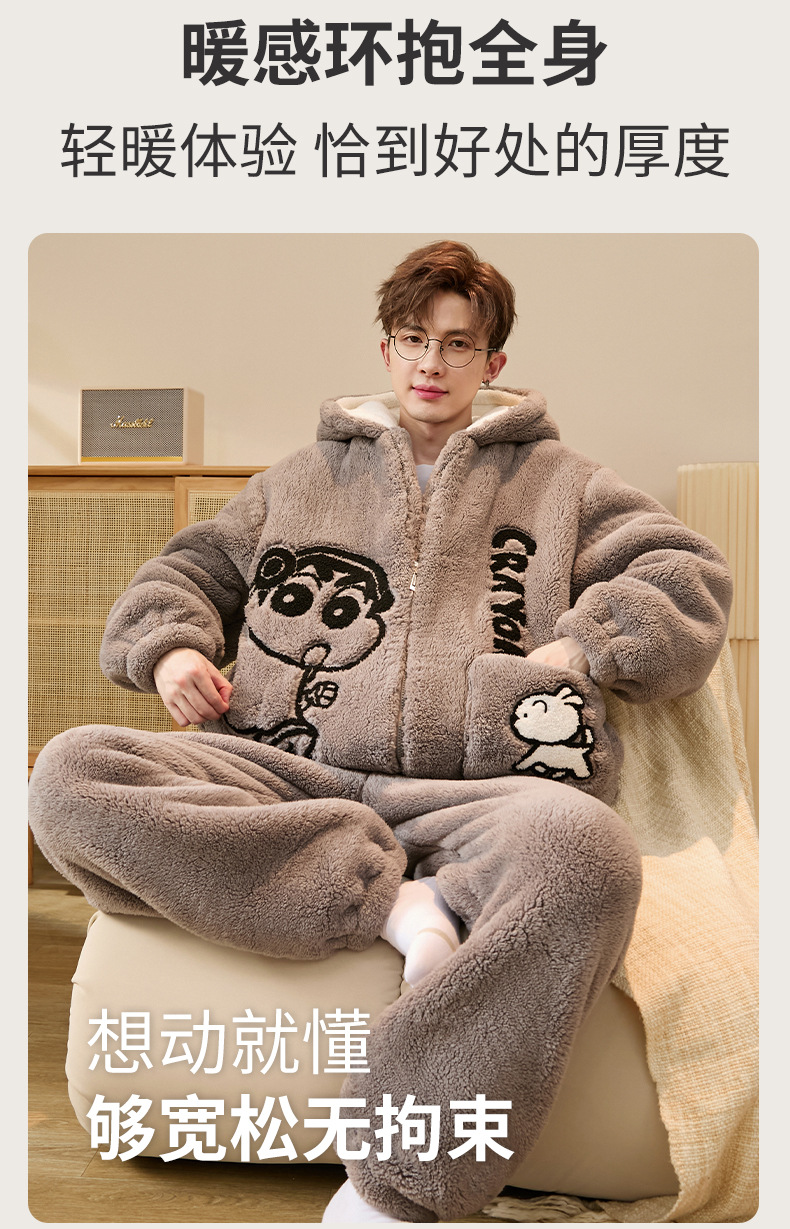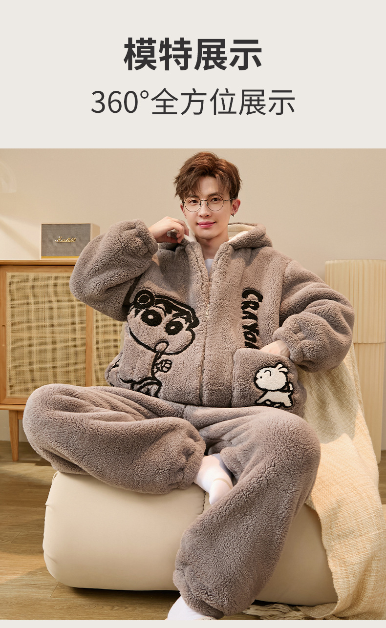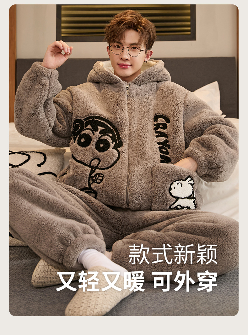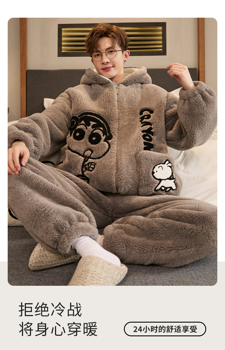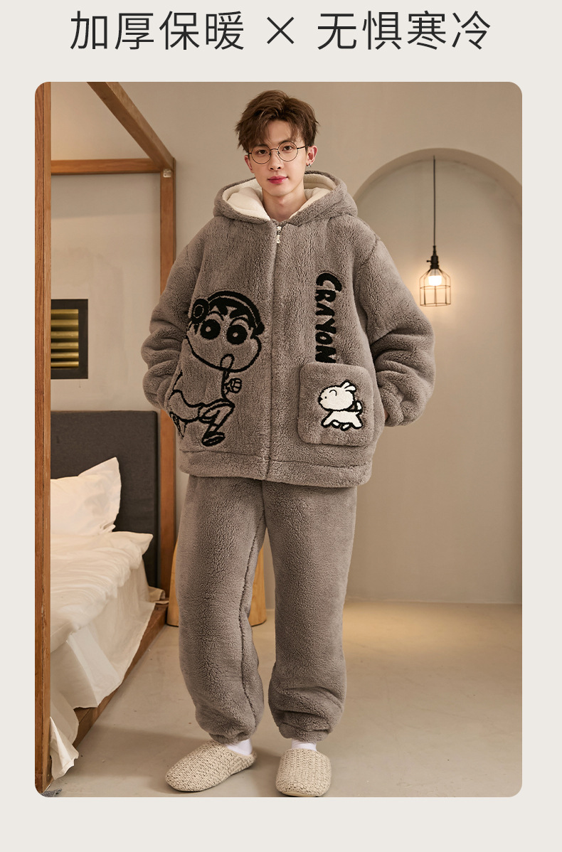 Пижамы для мужчин зимние коралловые велюровые утолщенные с флисовой подкладкой большие размеры осень и зима для молодежи школьников и детей старшего возраста