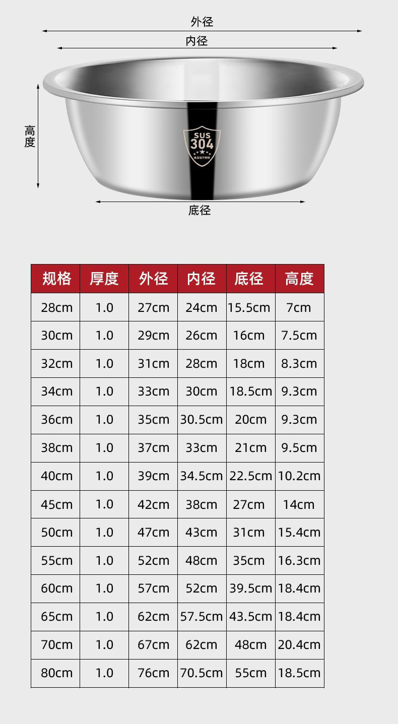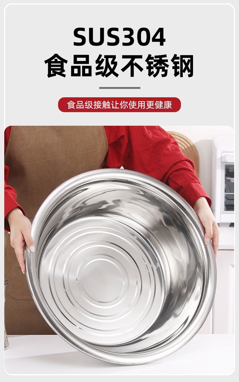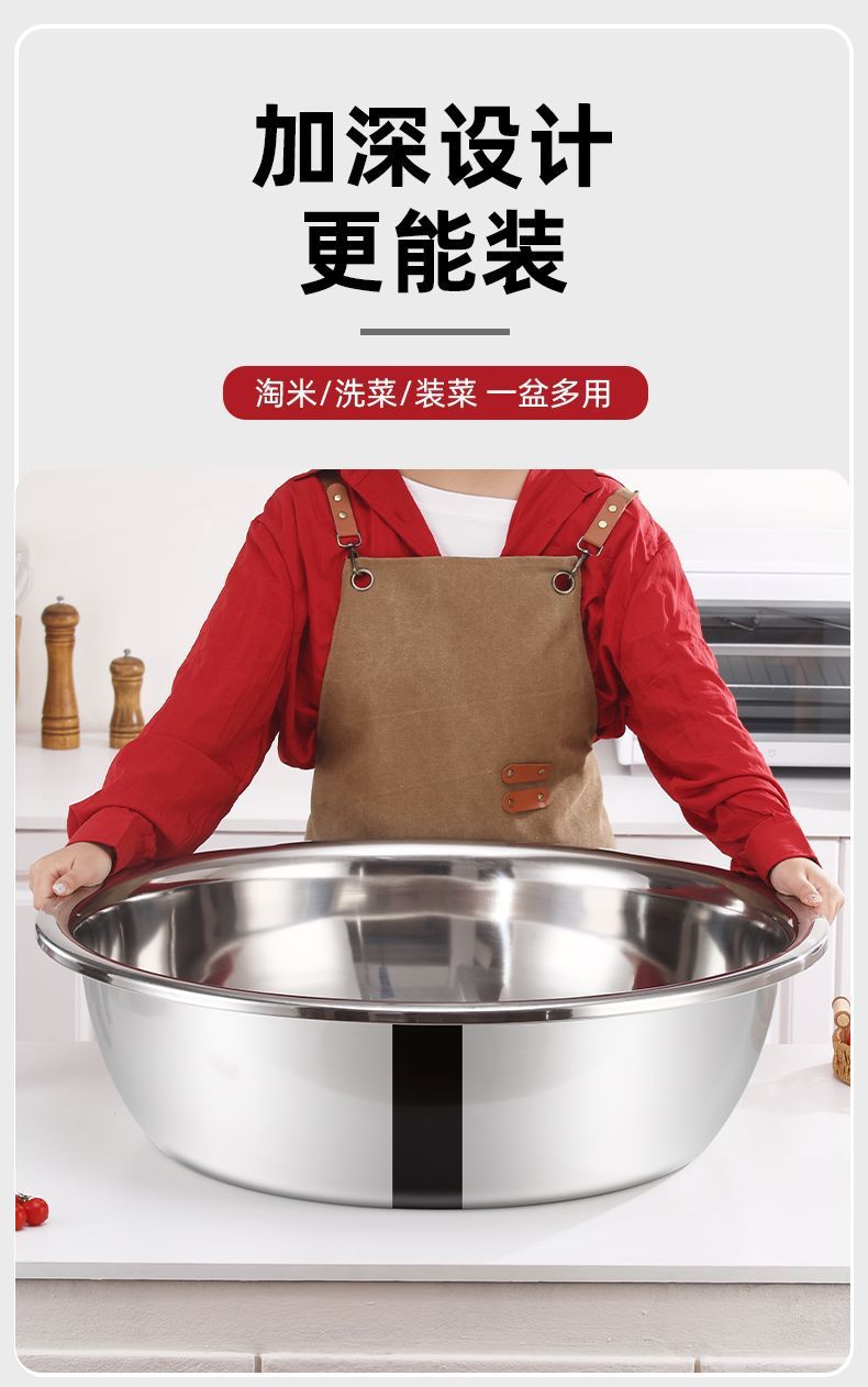 304 нержавеющая сталь, пищевой класс, утолщенный, для кухни, таз для мытья овощей, таз для замеса теста, таз для умывания, коммерческий сверхбольшой таз для стирки
