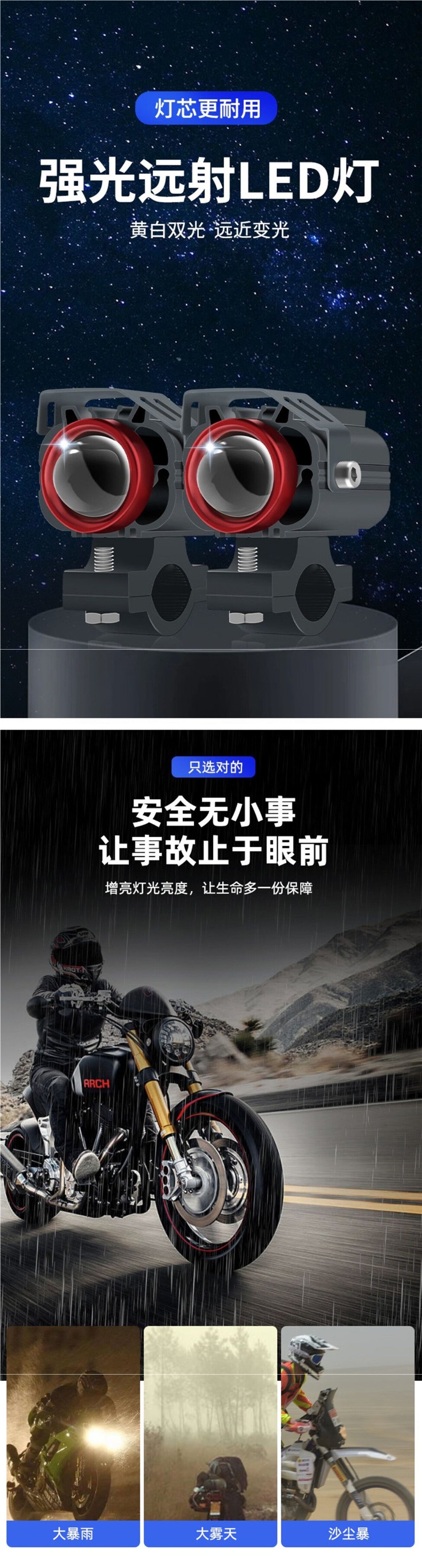 Светодиодный прожектор для мотоцикла электрического транспортного средства дорожный внешний дальний и ближний свет линза мощный универсальный