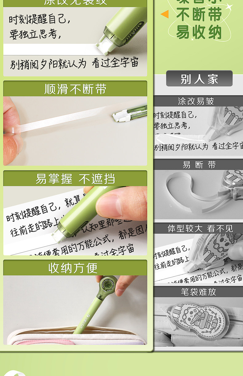 Корректирующая лента Lepusheng 9189 в виде ручки с заменяемым стержнем для учеников начальной и средней школы, стильная черная технология