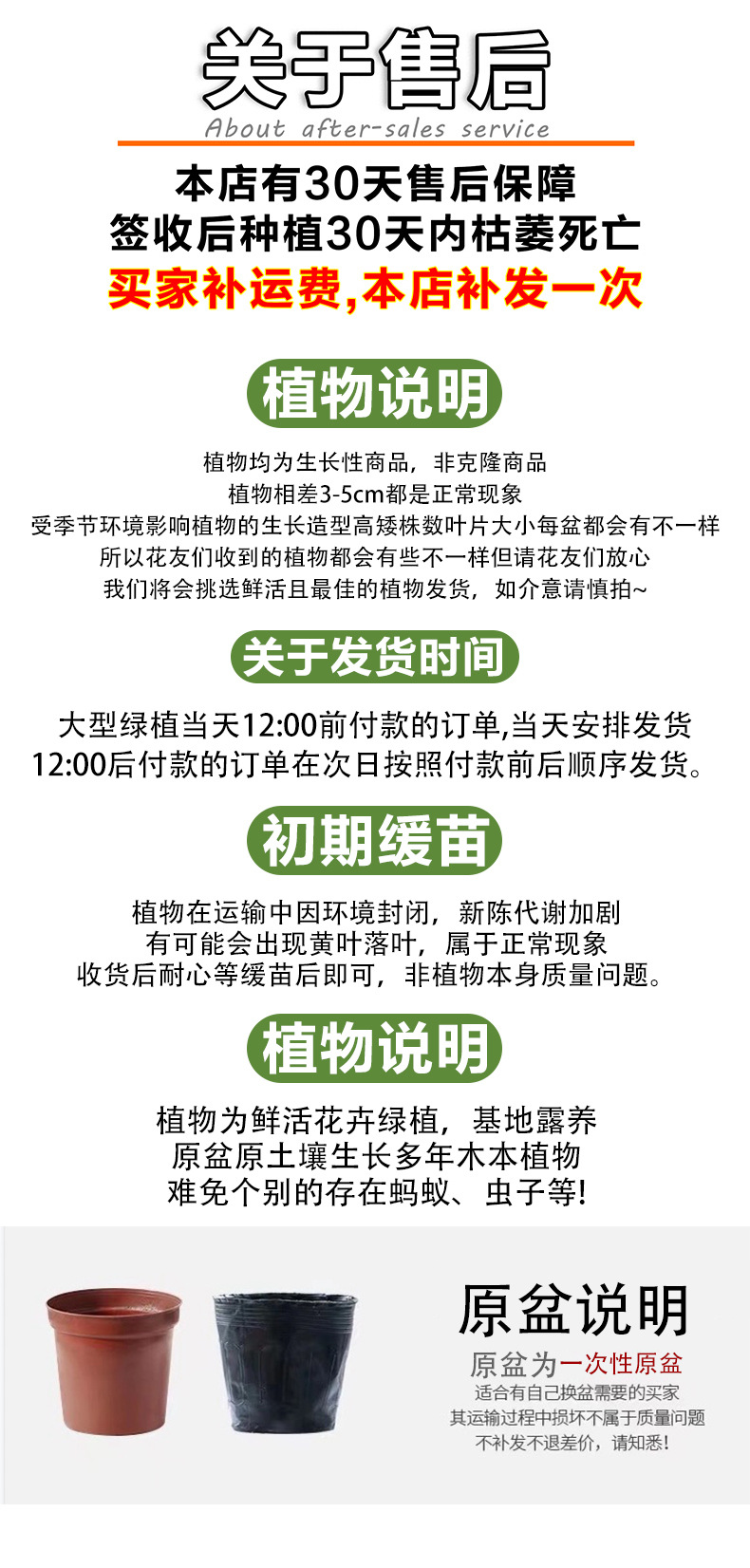 ![]() | Does not include basin | [special offer for two pots] 2 pots of random varieties (with buds blooming in all seasons) and free fertilizer [gallon pot] | ¥11.8 / ≈ 142 ₽ | 195 | 5936818796800 | |