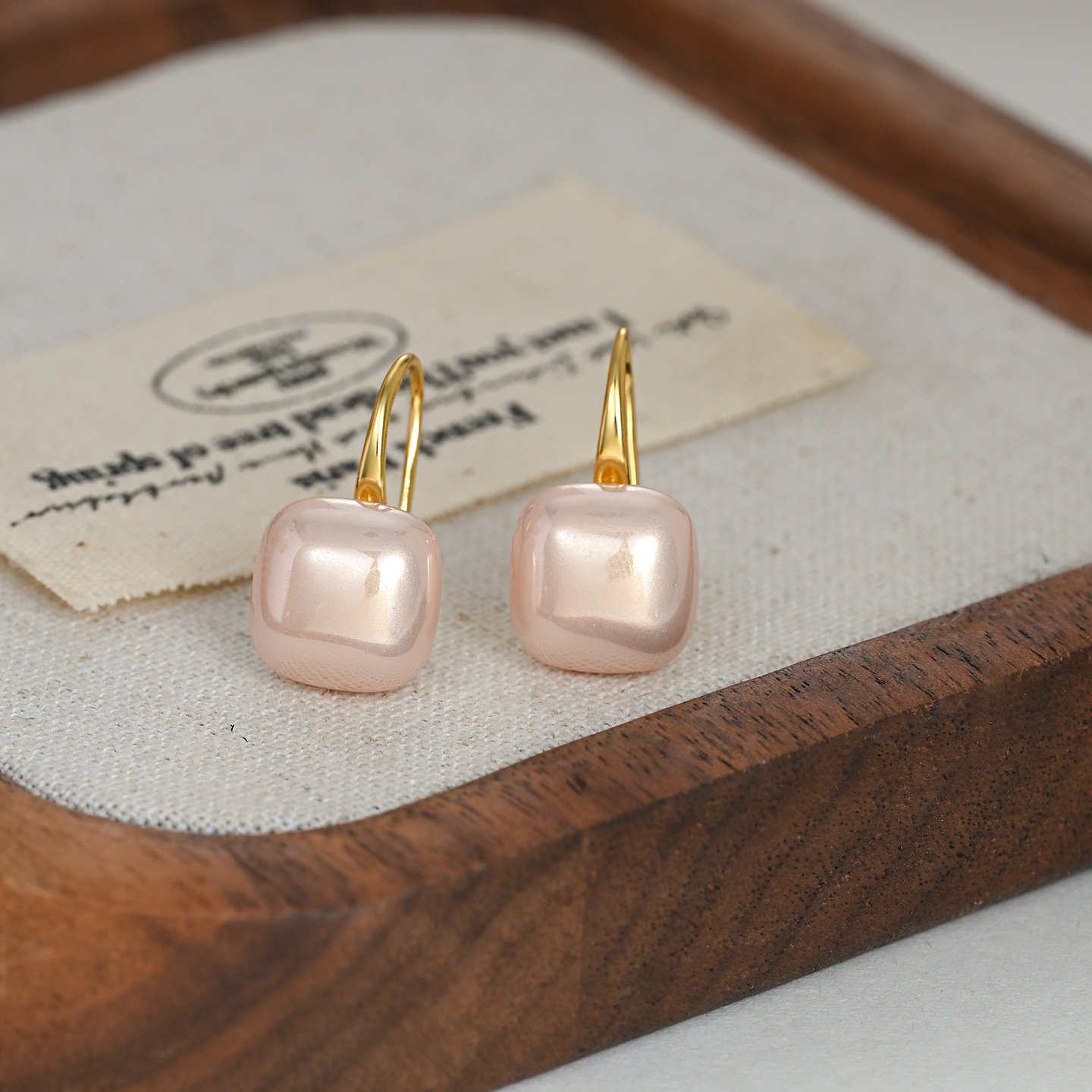 Новые светло-розовые маленькие серьги-кубики сахара для женщин, простые и элегантные, универсальные серьги для женщин, изысканные модные персонализированные украшения для ушей для женщин
