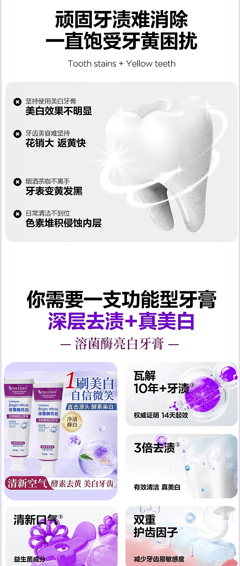 Зубная паста с лизоцимом 100г, свежий дыхание, удаление пятен, отбеливание зубов, уход за полостью рта для взрослых