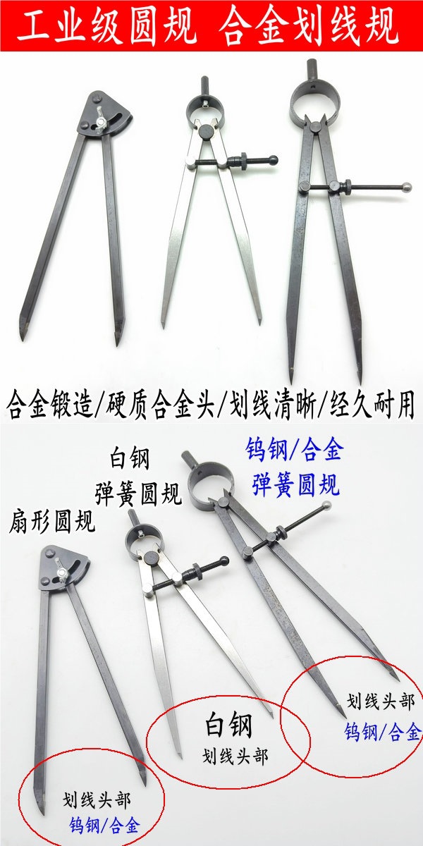 Большие промышленные циркули для машинистов, изготовленные из вольфрамовой стальной сплав, используются для разметки на дереве и механической разметки