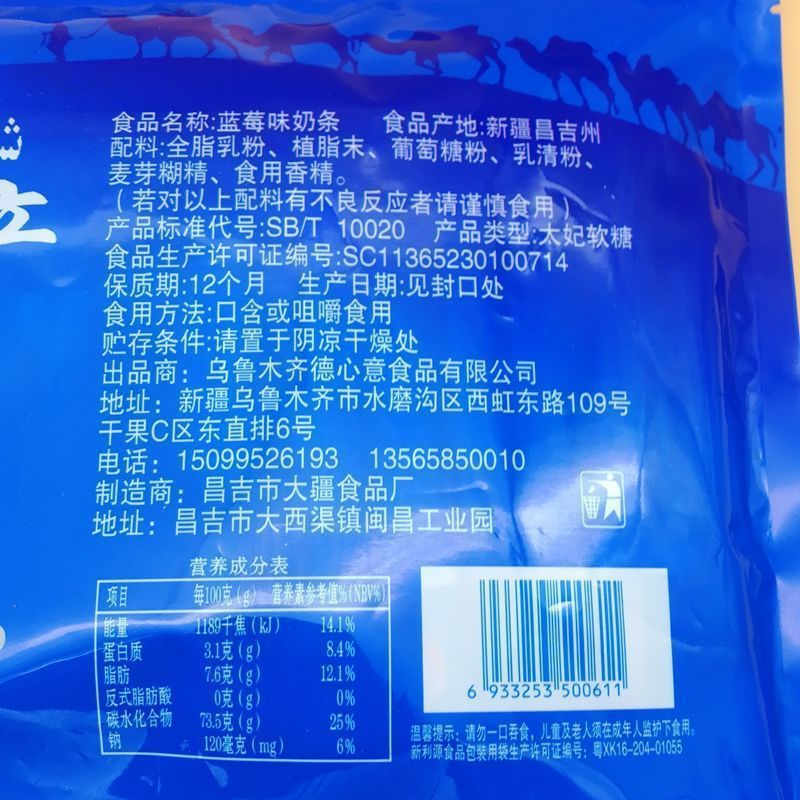 Молочные батончики De Yi Xin 1000г/пакет Специальность Синьцзяна Оригинальный йогурт Батончики с черникой Фруктовые молочные батончики