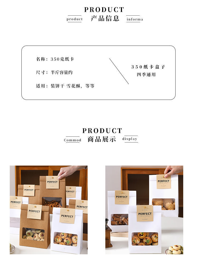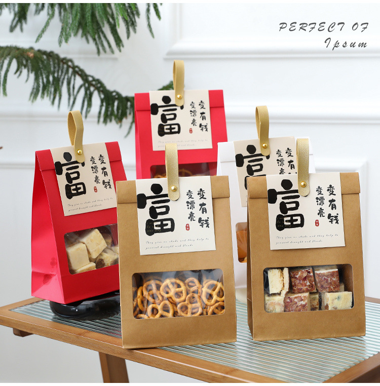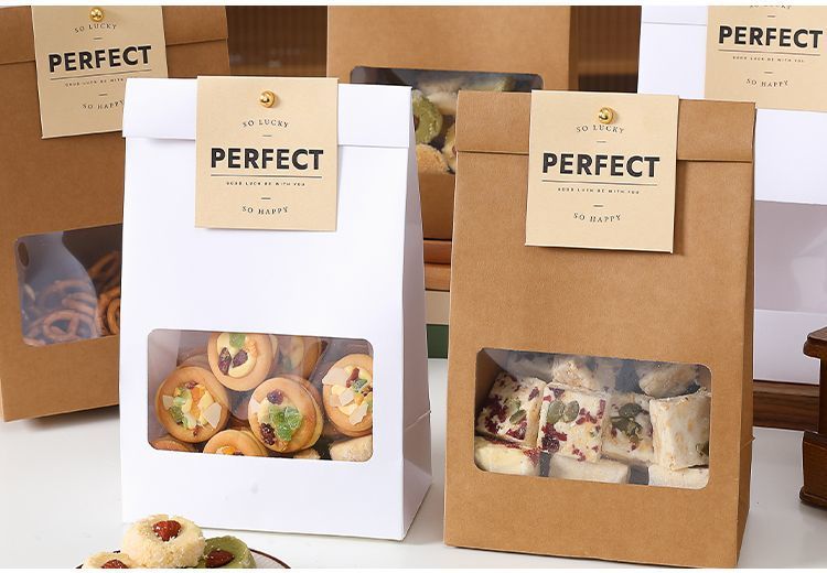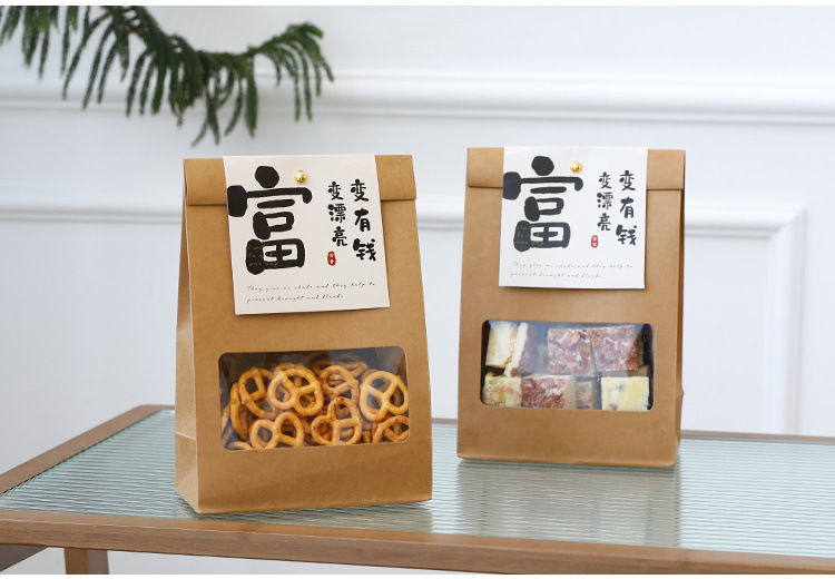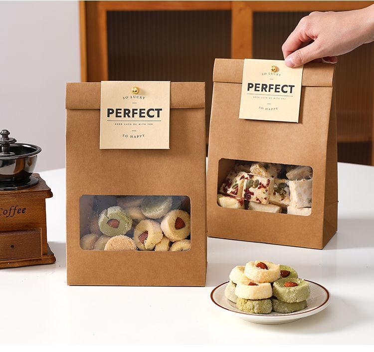 Упаковка из коричневой бумаги, печенье, снежинка, хрустящие клейкие рисовые пирожные, конфеты, нуга, торт для выпечки