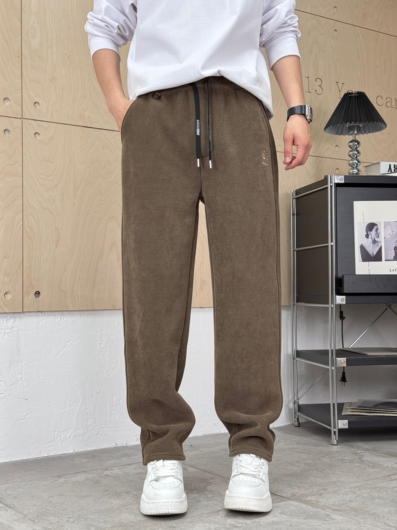 Брюки для мужчин осень-зима 2025 года, европейские, хлопковые, велюровые, утолщенные, теплые, прямые, стойкие к сминанию, повседневные брюки