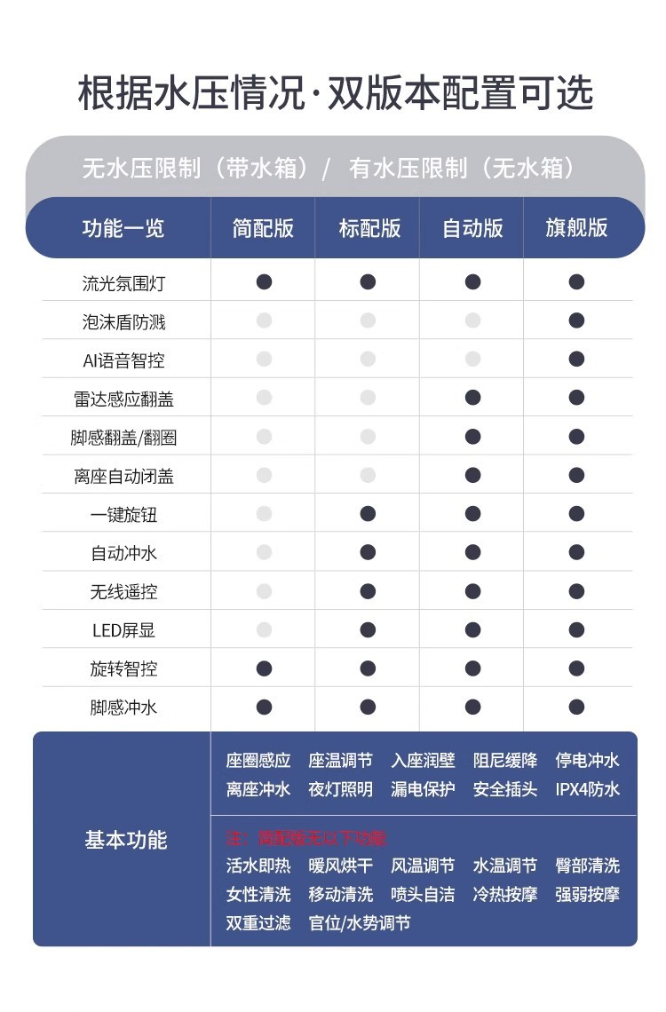 ![]() | Black screen simplified version - no water pressure limit [no cleaning and drying - no remote control] upgraded ambient lighting + aromatherapy | ¥458.0 / ≈ 5 517 ₽ | 8413 | 6100300050906 | |