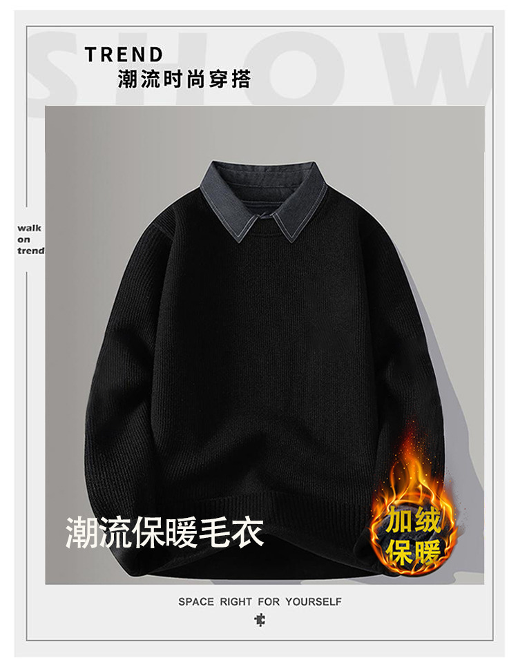 Свитер для осени и зимы, отпускной свитер с фальшивкой в два предмета, свитер с воротником, утолщенный теплый топ с вязаным свитером внутри