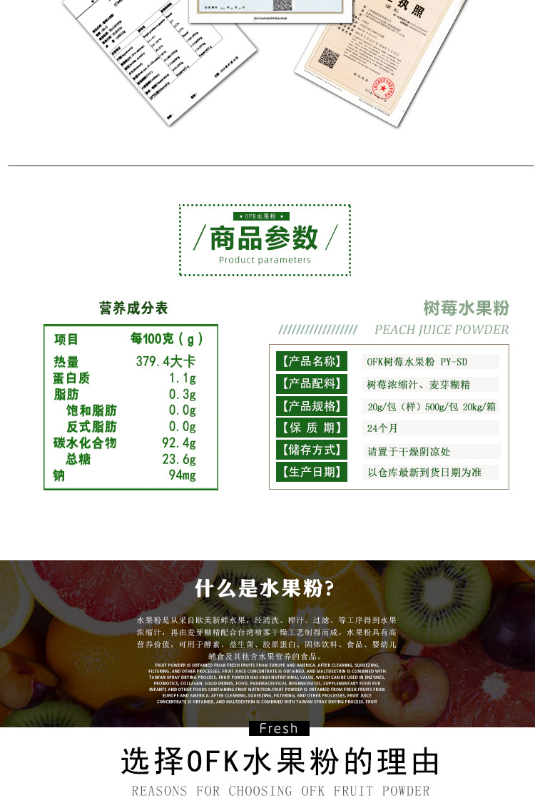 Ofk Тайвань импортированный порошок малины фруктовый и овощной порошок витамин C твердый напиток конфеты пробиотические десертные сырьевые материалы оптовая продажа