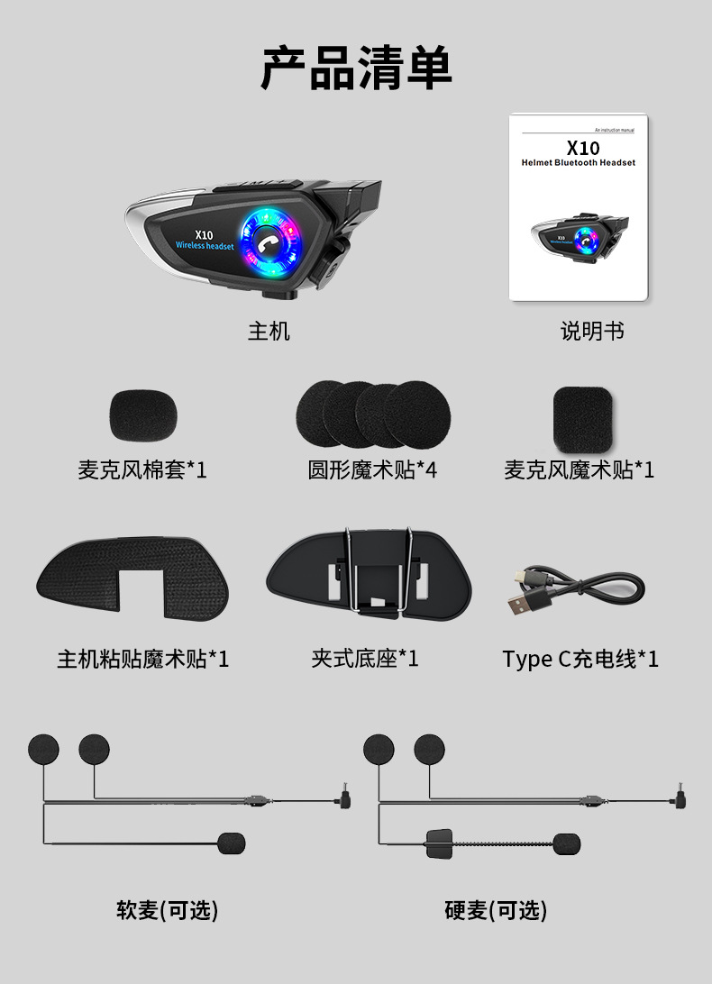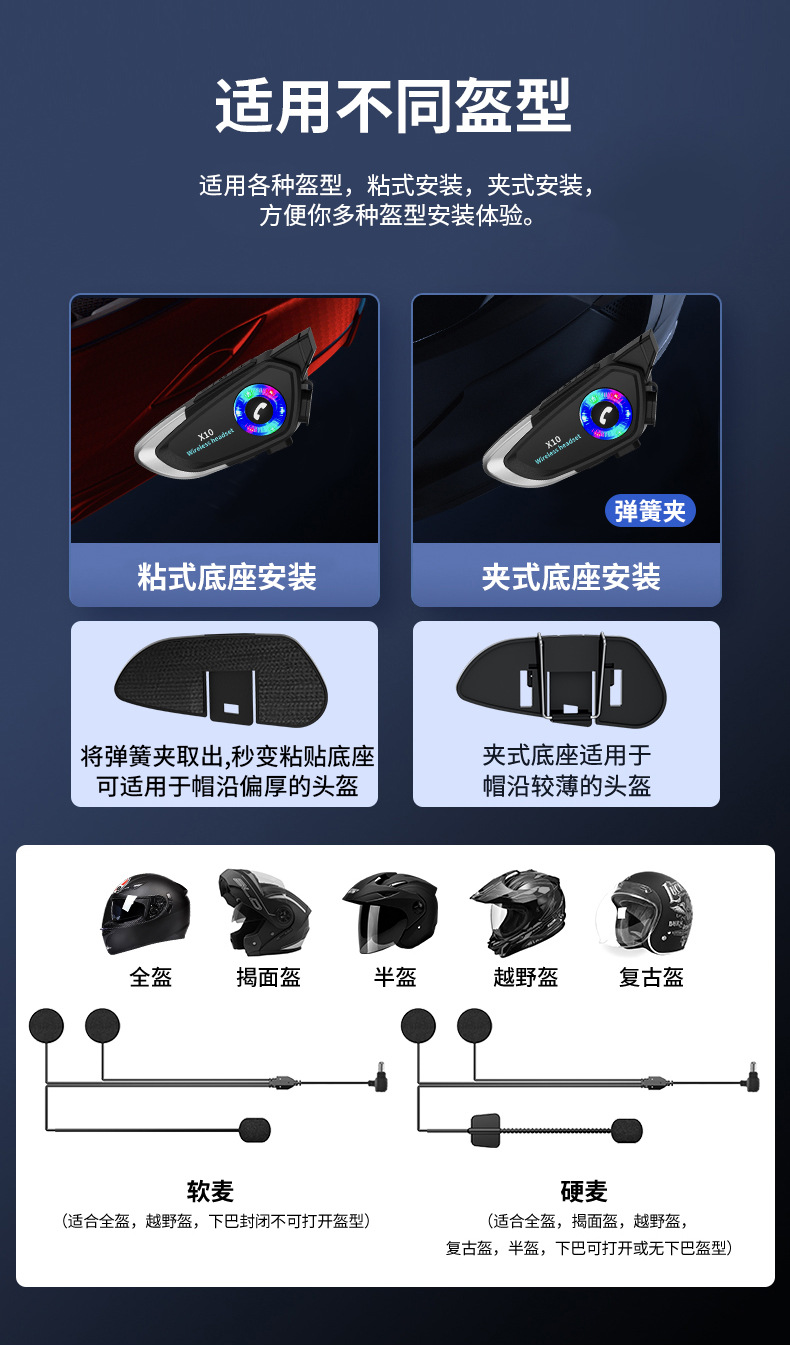 X10头盔蓝牙耳机,有FCC,CE,ROHS认证,外观专利
